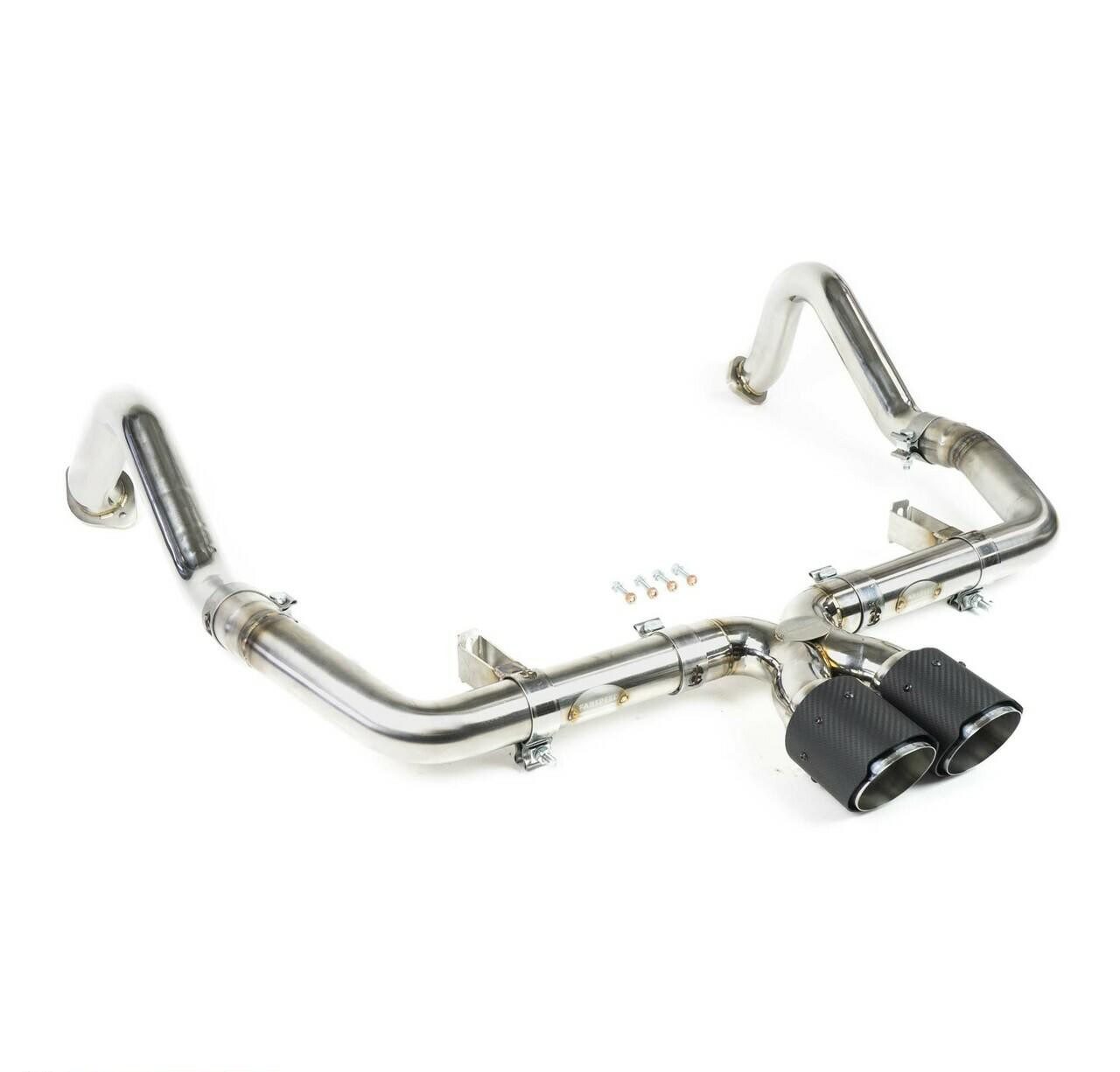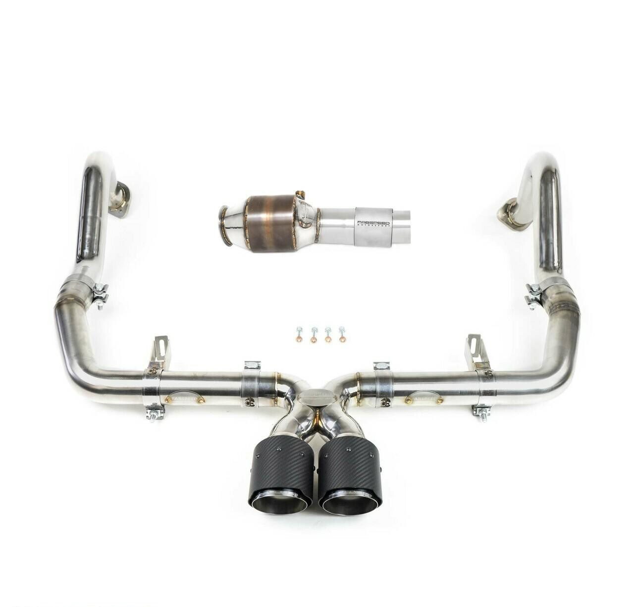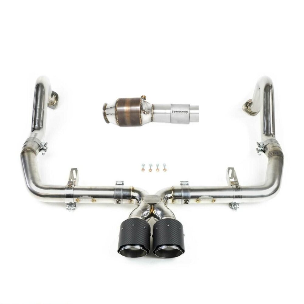 Experience the ultimate balance of performance and refinement with the Maxflo + Sport Cat Package, offering all the power of the Supersport Turboback Exhaust system while maintaining a more subdued tone and volume level. Crafted meticulously with precision, the Maxflo exhaust replaces the rear exhaust section with a lightweight cat-back exhaust, boasting mandrel-bent construction for seamless curves and utilizing .067″ thick wall tubing to optimize strength-to-weight ratio, resulting in an impressive 18lb weight reduction compared to the factory system. Constructed from resilient T304L stainless steel, this exhaust system ensures unparalleled corrosion resistance and long-lasting durability. The sport cat is engineered with a premium German-made 200 cell HJS HD catalyst, renowned as the pinnacle of aftermarket catalytic converter solutions. Enhancing exhaust flow, the high-flow cat facilitates faster turbo spool-up, delivering enhanced performance and responsiveness.