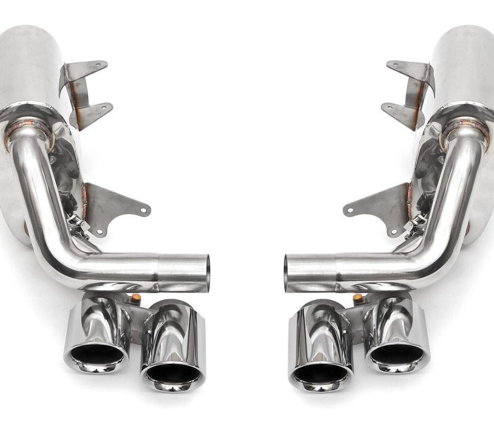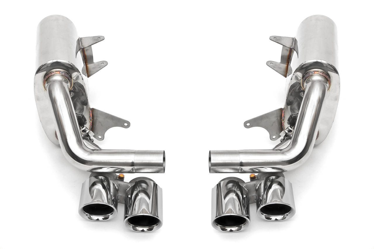 The 991 Carrera Maxflo Performance Side Exhaust system serves as a replacement for the factory side mufflers, enhancing exhaust flow and overall power, all while delivering a deep and resonant sports car sound. Users have the option to retain the OEM outlet tips or opt for an upgrade to Deluxe Quad-Style Tips, resulting in a slightly more throaty and deeper exhaust tone across the RPM range.