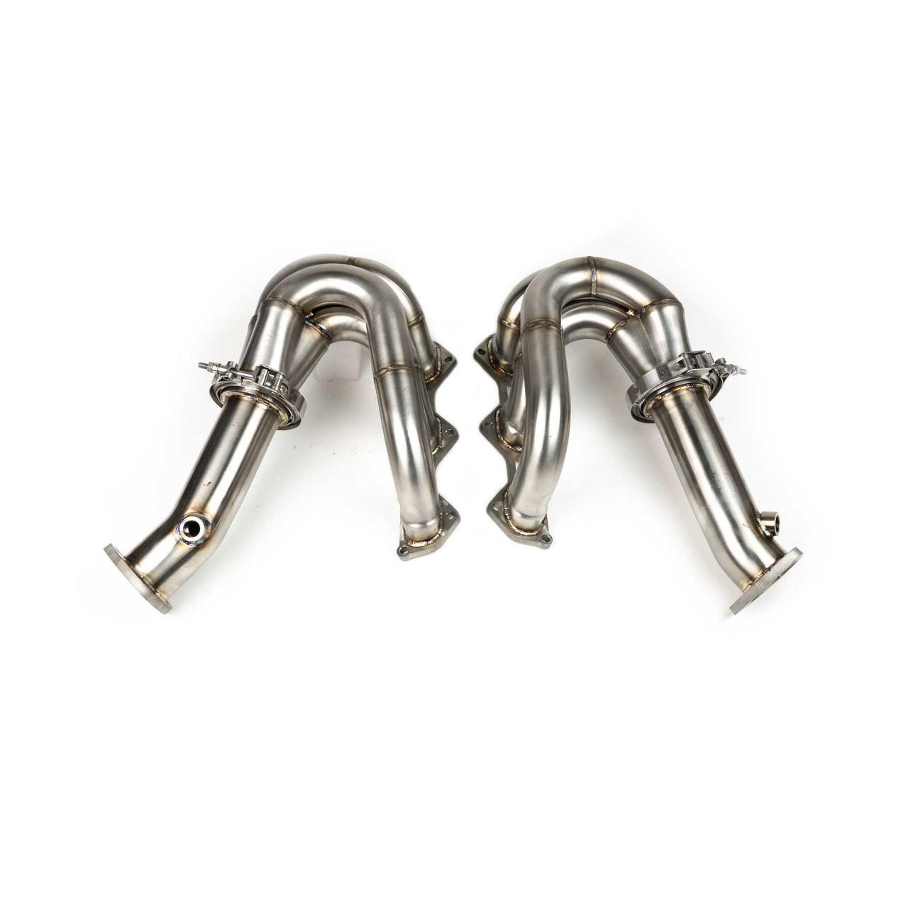The modular RENNKRAFT headers present an ideal solution for any street-driven 4.0-liter Cayman or Boxster. Featuring a patented modular design, these headers incorporate a quick-release v-band connector, enabling owners to effortlessly interchange between our German-made HJS 200-cell cats and competition pipes for track use. Translated from German, Rennkraft means “race power,” and these distinctive headers embody true street and racetrack functionality within an innovatively engineered package.