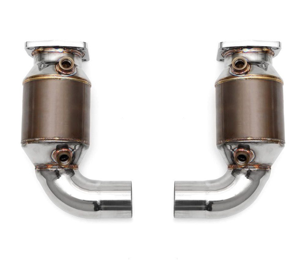 The Fabspeed Sport Cats for the 991.1 Porsche 911 Turbo & Turbo S offer a high-flowing, direct bolt-on replacement for the factory components, delivering significant performance enhancements. Featuring HJS German catalytic converters, these sport cats provide improved exhaust flow, boosting power and throttle response, while also enriching the sports car sound for a more aggressive and thrilling exhaust note. Built for long-term durability, Fabspeed Sport Cats are the ideal upgrade for enthusiasts seeking both improved performance and an elevated driving experience.