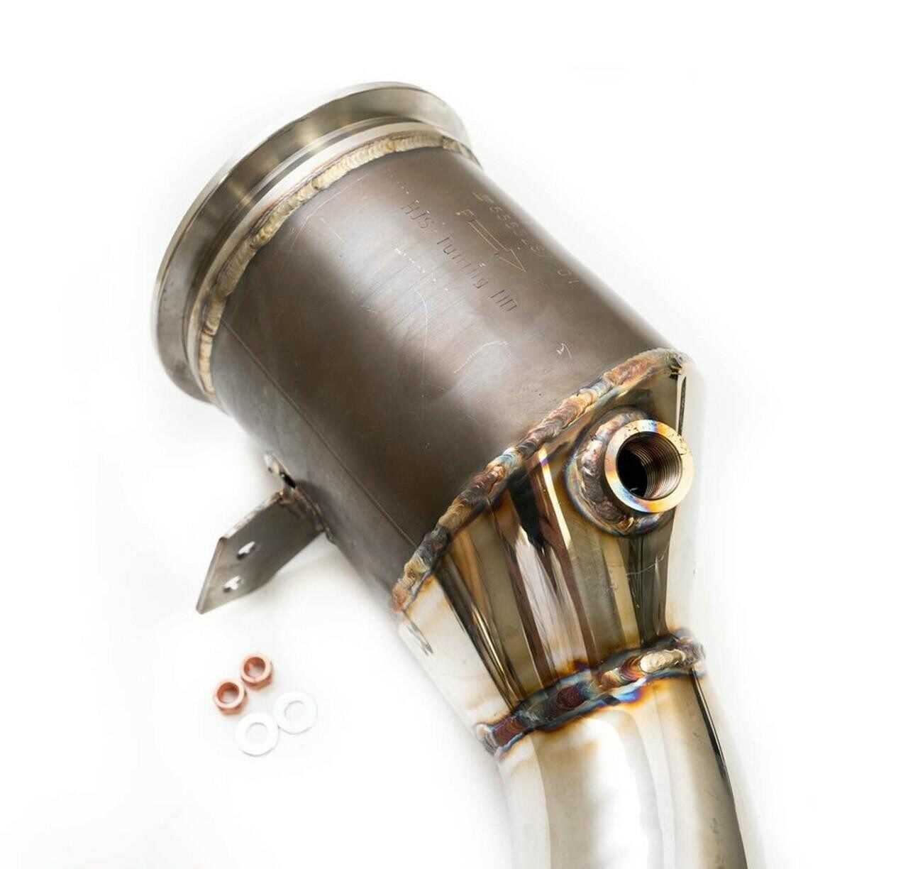 Unlock serious flow and everyday refinement on the 992.2 Porsche 911 Carrera, Carrera S, Carrera 4S, and Targa 4S with Fabspeed Sport Cats — direct replacement, bolt-on XL HJS German 200 cell ultra high-flow catalysts. HJS tri-metallic cores pack 200 cpsi versus the factory’s ~700 cpsi and flow 90%+ of a straight pipe, delivering a more intoxicating sports car sound and massive under-the-curve gains of 93ft-lbs TQ and 53 crank hp. Each unit features a CNC machined billet T304L inlet flange hand TIG welded to HJS HD catalysts, 321L stainless heat shield-wrapped converter cores, and CNC mandrel-bent T304L stainless tubing for durability and precise fitment.
