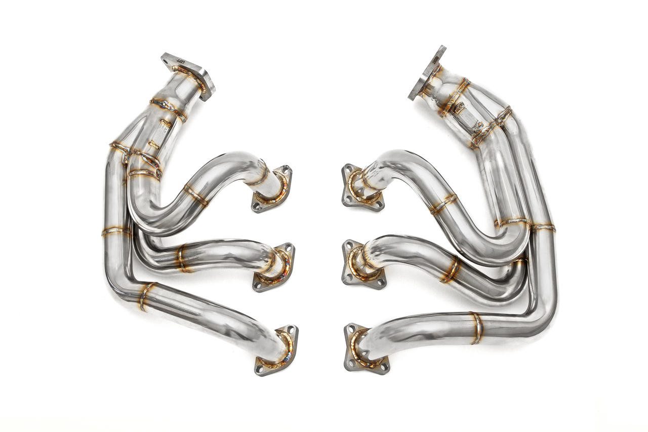 The Fabspeed Motorsport 993 Carrera OEM-style performance headers enhance throttle response and power across the entire RPM range. They serve as a direct replacement for the original Porsche Bischoff and Gillet factory headers found in all 993 OEM stock models. These Porsche header upgrades are engineered to unlock the full horsepower potential of your 993 Carrera, all while achieving significant weight reduction. Shedding weight from the rear of a 993 or 991 is a highly effective method to enhance handling. Notably, these headers intentionally omit heat exchange boxes, effectively reducing heat within the 993. This makes them particularly suitable for track use or for regions with warmer climates.