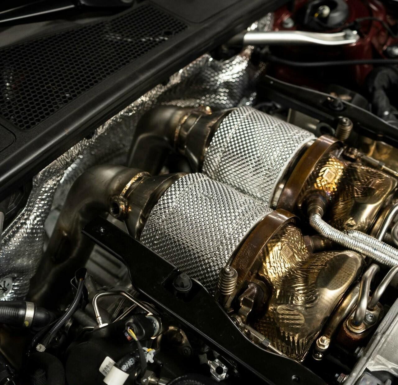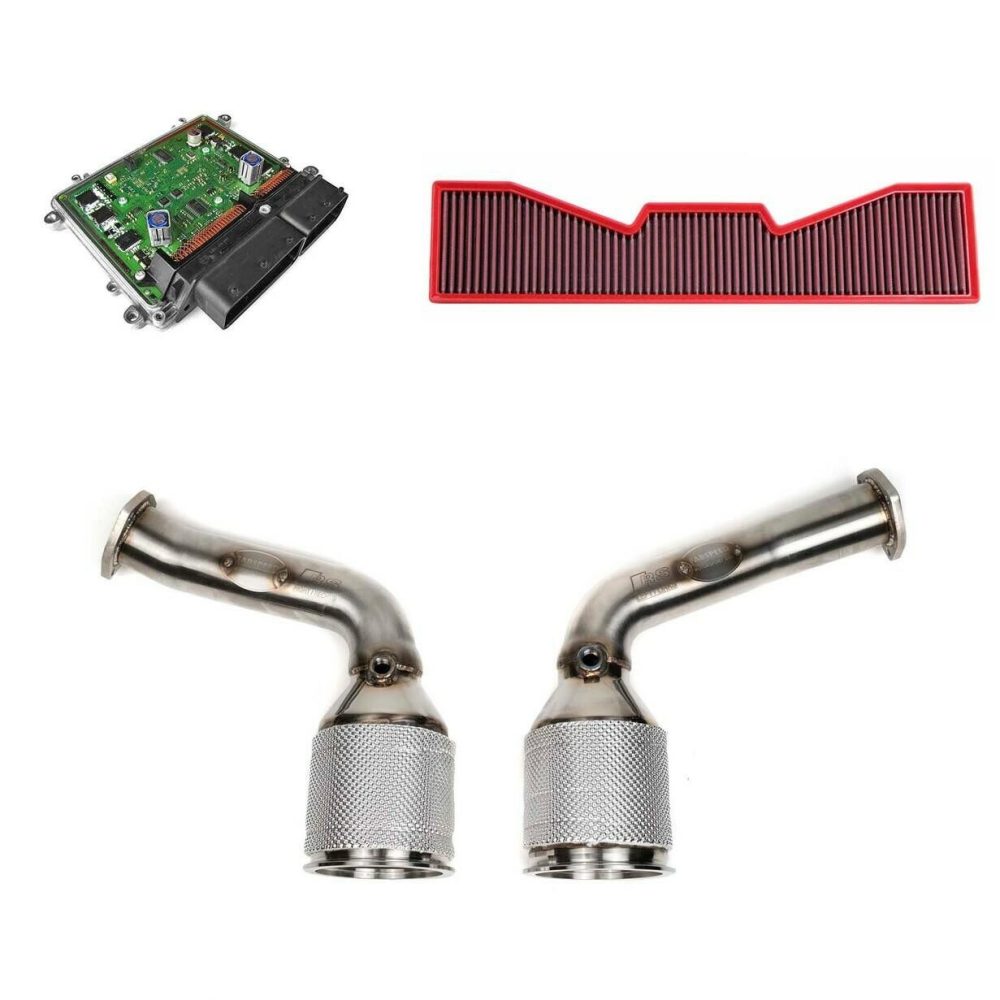 Introducing the Fabspeed’s Performance Package for the Audi RS6 & RS7, the ultimate upgrade for enhancing your vehicle’s power and efficiency. Engineered to significantly improve turbo spooling speed and reduce turbo lag, this comprehensive package promises to revolutionize your driving experience with astonishing gains of 170whp and 140ft/lbs of torque. Each component is meticulously crafted from T304L high-quality stainless steel, ensuring durability and longevity. The inclusion of HJS Germany’s tri-metallic 200 cell sport cats guarantees optimal exhaust flow and performance. Completing this exceptional package is a high-quality BMC air filter, designed to outperform standard factory paper elements by providing superior airflow.