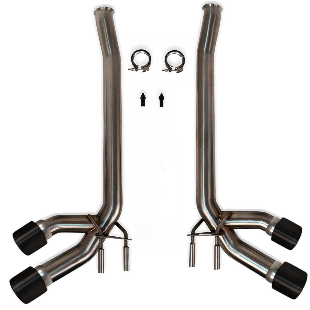 Direct bolt-on Supersport Exhaust with Dual Tips for the W463 G 63 replaces restrictive OEM side mufflers to deliver more power and true sports car sound, built in the USA from 2.75 inch 70 mm CNC mandrel-bent tubing. It is 100% EPA and CARB compliant, warranty safe, street legal worldwide, and offered with oval, carbon fiber, or titanium tip options.
