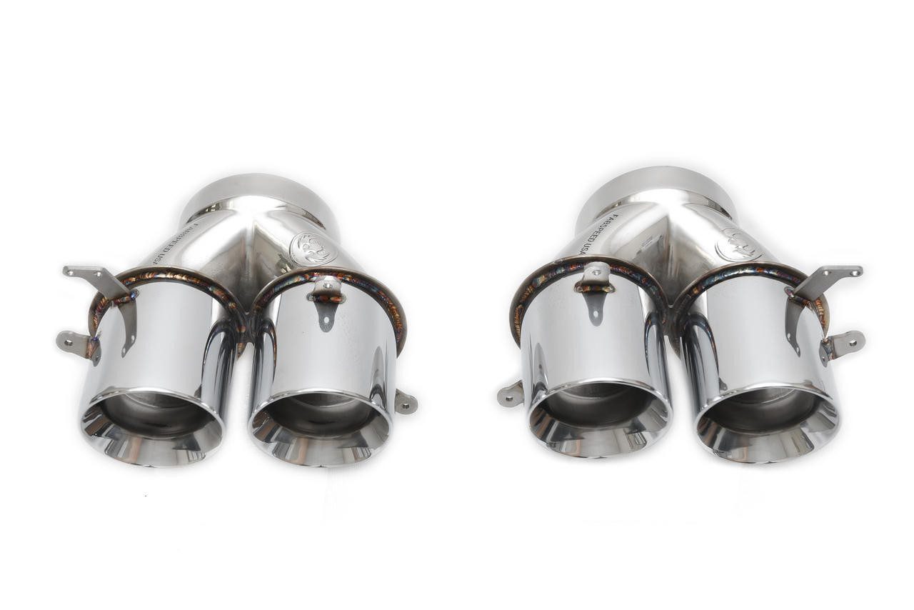 The heavy and restricted factory MP4-12C exhaust is replaced with a lightweight, high-flowing Supersport X-Pipe, thanks to the Fabspeed’s in-house Project McLaren MP4-12C used as a continuous development platform for new products. This setup affords the luxury of extended engineering time to create the finest solutions for extracting power and producing glorious sound. The system includes LT-Style tips, inspired by the 675LT, showcasing the meticulous craftsmanship that goes into each component. Completely fabricated in-house at Fabspeed, each tip is cut, brushed, and welded by hand, while the surrounds are precisely crafted using the Flow Waterjet, ensuring a product of exceptional quality and performance.