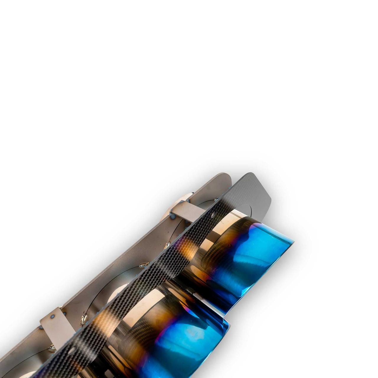The Fabspeed Titanium Quad Tips for the C8 Chevrolet Corvette Z06 offer a stunning upgrade over the factory tips with a direct replacement, bolt-on design. These floating-style tips are compatible with both OEM and many aftermarket exhaust systems, providing versatility and enhanced style. Crafted from durable titanium, they are built to last and feature a beautiful blue-purple tint that develops under intense heat, adding a unique visual appeal to your Corvette. The installation is simple, requiring no cutting or welding, making it a hassle-free upgrade for any Z06 owner looking to elevate both performance and aesthetics.