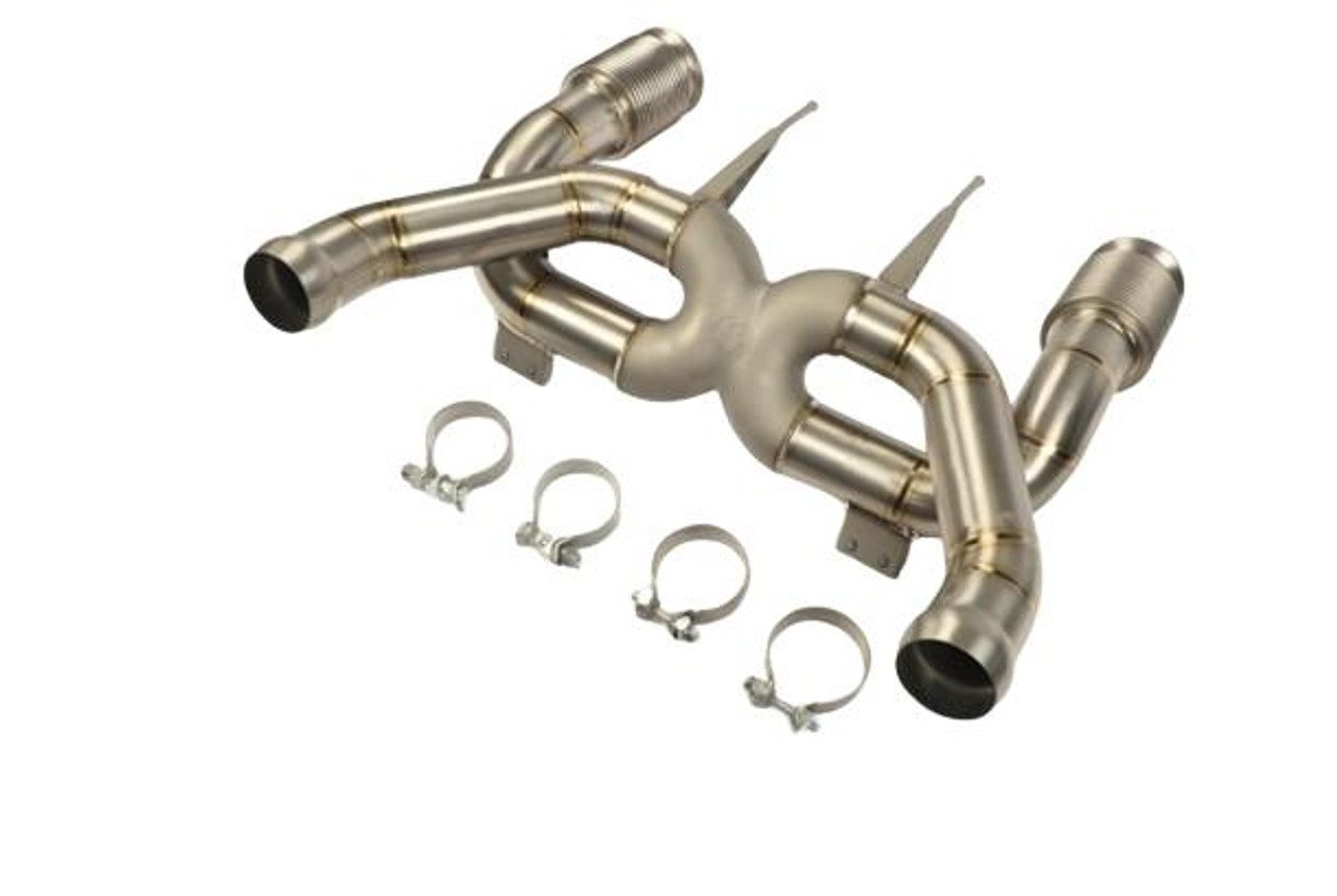 The Fabspeed Titanium X-Pipe Exhaust for the Ferrari 488 GTB and Pista delivers an exhilarating high-pitched exotic sports car sound that enhances the driving experience. Constructed from high-quality, CNC mandrel-bent pure titanium, this exhaust system is 40% lighter than traditional T304 stainless steel, providing significant weight reduction for improved performance. The hand-built X-pipe section is meticulously crafted using argon back-purged TIG welding, ensuring exceptional durability and a flawless finish. This combination of lightweight design and superior craftsmanship results in a truly distinctive sound and an optimized driving experience for any Ferrari enthusiast.