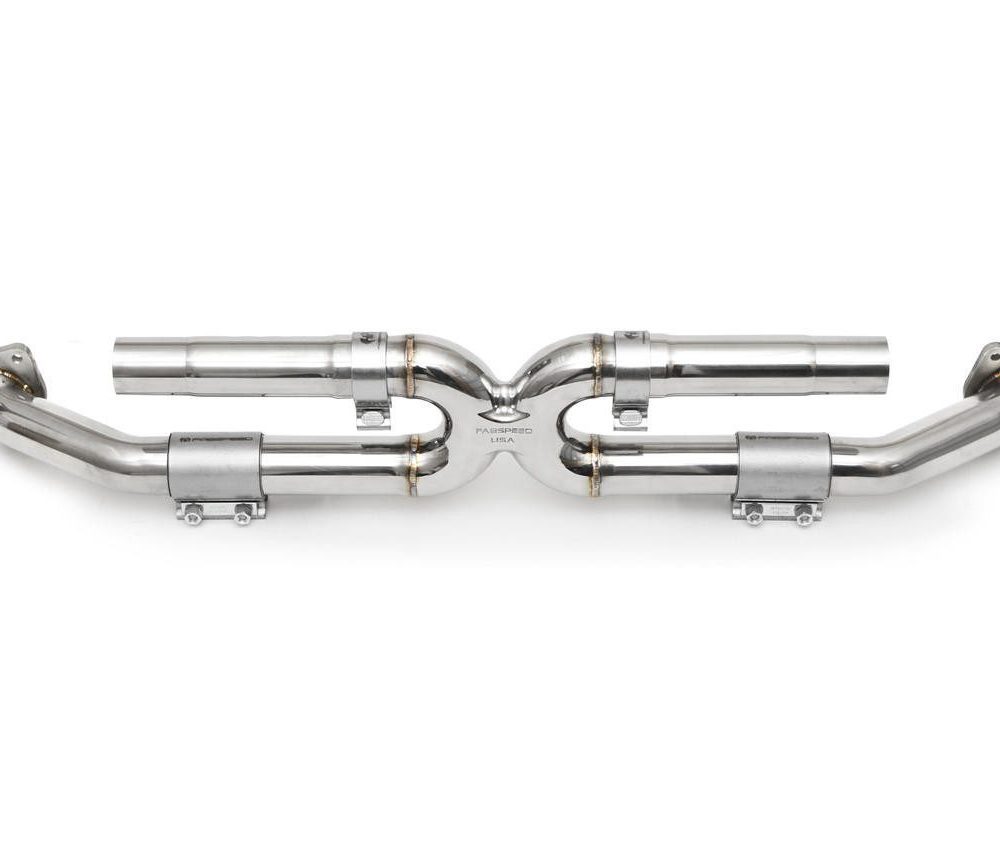 The 991 Carrera Center Muffler Bypass X-Pipe serves as an excellent complement, whether paired with the factory side mufflers or Fabspeed’s Maxflo Performance Side Exhaust System. This system significantly enhances the exhaust tone and reduces weight by replacing the factory center muffler with a lightweight, high-flow x-pipe. Fabspeed’s 991 Carrera Center Muffler Bypass X-Pipe delivers a noticeably louder and more aggressive exhaust note compared to the factory setup.