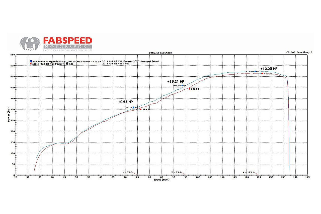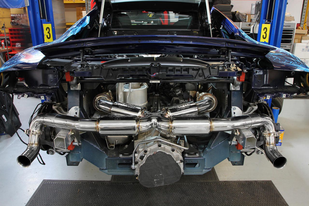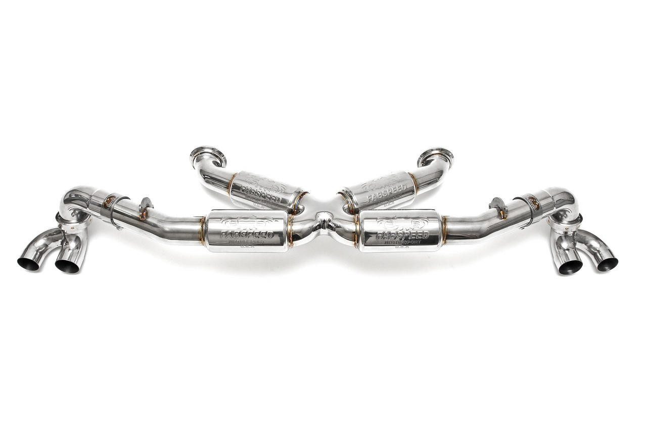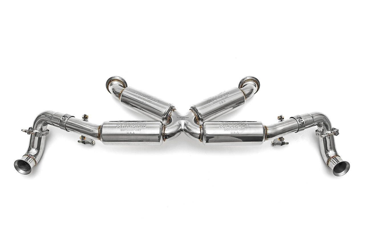 Exhaust gases are channeled through Fabspeed’s signature 63.5mm quad-resonated x-pipe, which is specifically engineered to smooth out exhaust pulses for a sophisticated and exotic exhaust note, while ensuring it remains as free-flowing as possible. The exhaust tone is significantly more aggressive than the factory setup, yet it avoids being ear-piercingly loud, and impressively, it does not produce any in-cabin drone.