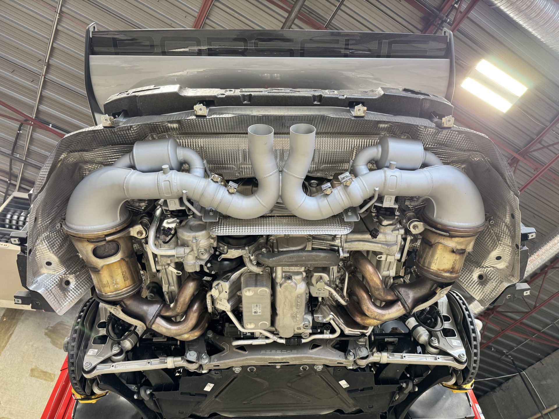 The Porsche 992 GT3 / RS Race Version Fi EXHAUST is a high-performance valvetronic system engineered as a direct bolt-on replacement, crafted from premium T304 stainless steel for an exhilarating soundtrack and enhanced performance. Utilizing advanced valvetronic technology, it optimizes torque, airflow, and sound control, increasing horsepower by 5-10% with a full setup, including a valvetronic catback and ultra-high-flow downpipe. Closed valves provide a refined, comfortable drive, while fully open valves unleash an intense, sporty exhaust note. The Fi EXHAUST Titanium for Porsche 992 GT3 offers an ultra-lightweight alternative, reducing weight by 46% compared to stainless steel while maintaining strength and durability. With 1.6mm-thick polished titanium walls and titanium components—including valves, clamps, and screws—it enhances sound frequency, gas flow, and aesthetics. Designed for seamless control, the valvetronic system delivers a subdued tone when closed and an intense, exotic exhaust note when fully open, ensuring an unparalleled driving experience.