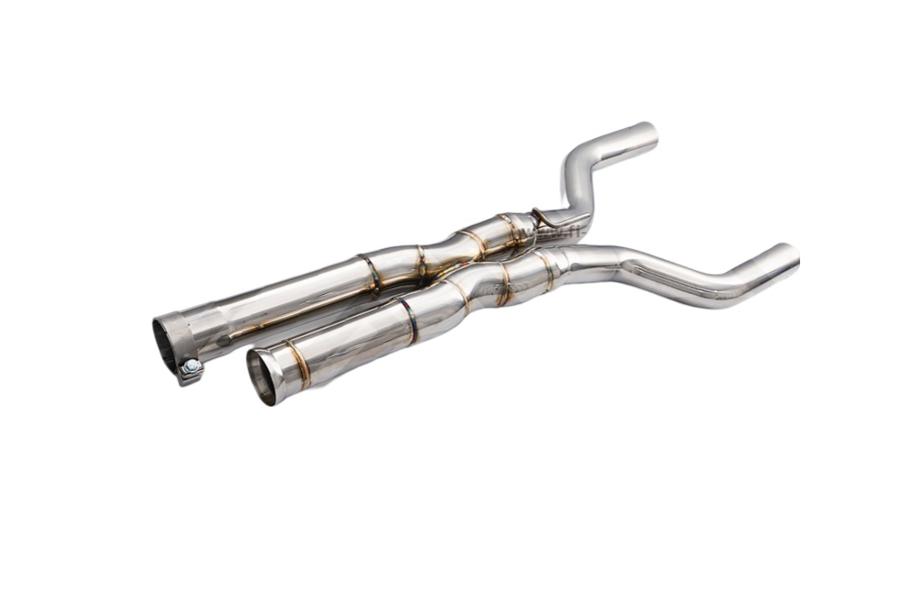 The Aston Martin Vantage V8 Fi Exhaust (Frequency Intelligent Exhaust) system is a high-performance valvetronic exhaust designed as a direct bolt-on replacement, crafted from premium T304 stainless steel for durability and an exhilarating sound experience. Engineered with advanced valvetronic technology, this system optimizes airflow, regulates sound volume, and enhances overall performance and torque. A full system, including the valvetronic catback and ultra-high-flow downpipe, can deliver an average horsepower increase of 5-10%. With the valves closed, exhaust gases pass through the muffler for a quieter, more comfortable drive. When the valves are fully open, the system produces an intense, sporty sound. Depending on the vehicle model and exhaust configuration, switching between street and race modes can be managed using the factory exhaust or sport button, drive modes, or the optional Fi Pro remote control upgrade. It is important to verify model-specific compatibility by consulting the available options or contacting a representative. Each system for the Aston Martin Vantage V8 features uniquely designed muffler internals, tailored to deliver an unparalleled driving experience.