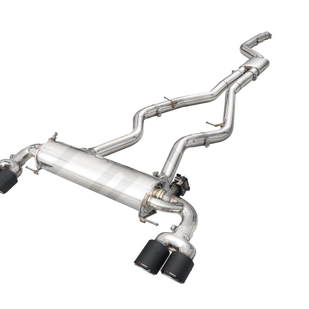 Fi EXHAUST for the BMW G42 M240i is a high-performance valvetronic system made from T304 stainless steel, enhancing sound and power. It offers adjustable exhaust modes, increasing horsepower by 5-10% with a full setup, delivering an exhilarating driving experience.