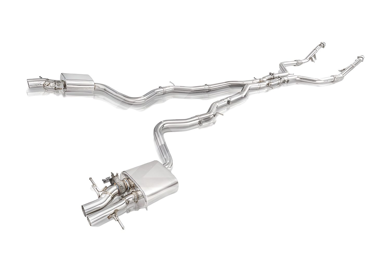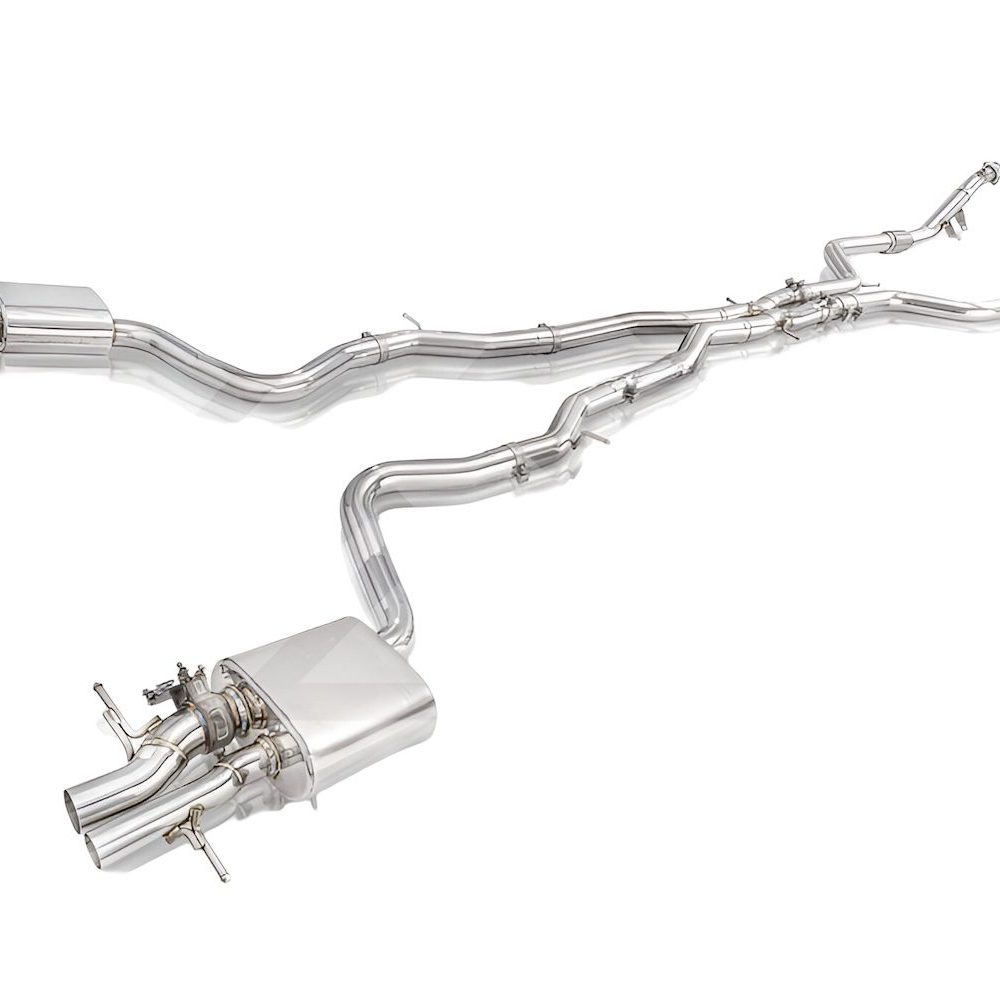 Fi EXHAUST provides a high-performance valvetronic exhaust system for the Mercedes-AMG W222 S 63, engineered as a direct bolt-on replacement. Manufactured from high-grade T304 stainless steel, this system enhances both sound and performance, delivering an exhilarating exhaust note. Designed with advanced valvetronic technology, Fi EXHAUST optimizes airflow, regulates sound volume, and increases torque. A full setup—including a valvetronic catback and ultra-high flow downpipe—can boost horsepower by approximately 5-10%. With the valves closed, exhaust gases are routed through the muffler for a refined and comfortable drive, while fully open valves produce an intense and sporty exhaust note, elevating the driving experience.