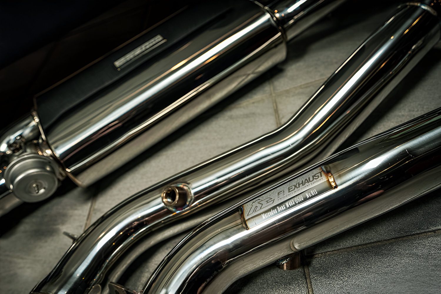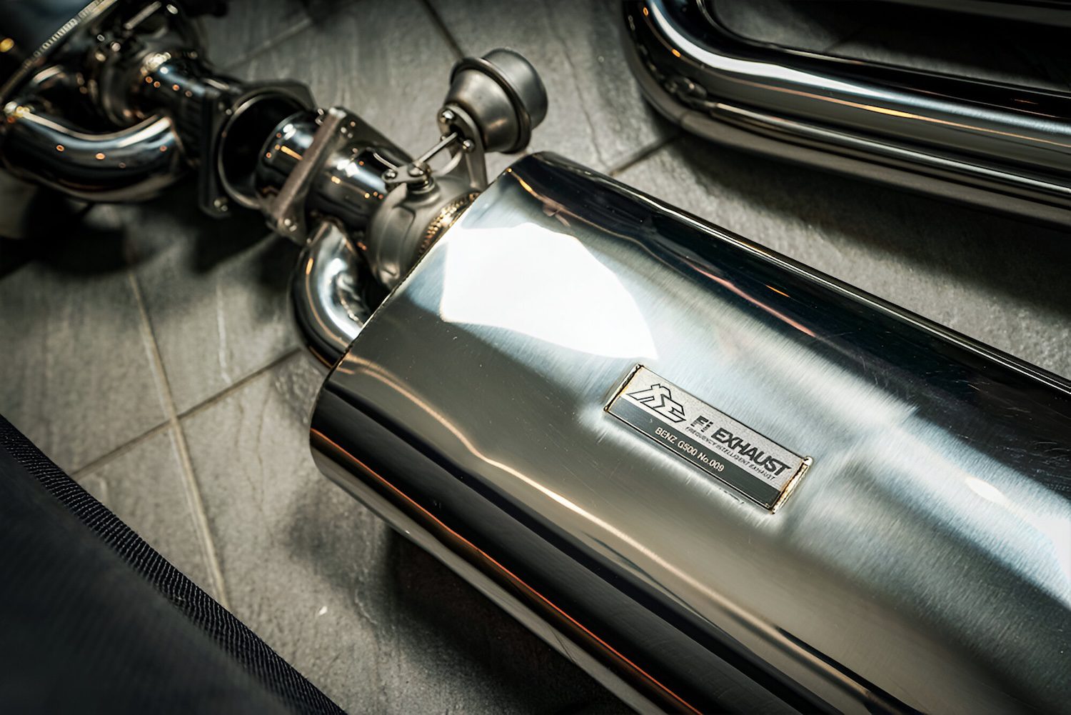 Fi EXHAUST offers a high-performance valvetronic exhaust system for the Mercedes-Benz W463 G500 and G550 Ultimate Double Quad Tips, designed as direct replacement bolt-on systems made from premium T304 stainless steel. These systems incorporate valvetronic technology to control airflow, sound volume, and enhance overall performance and torque. When installed with a complete system, including a valvetronic catback and ultra-high flow downpipe, horsepower is expected to increase by 5-10%. With the valves closed, exhaust gases are routed through the muffler for a smooth, low-profile drive, while fully opening the valves produces an intense, sporty soundtrack.