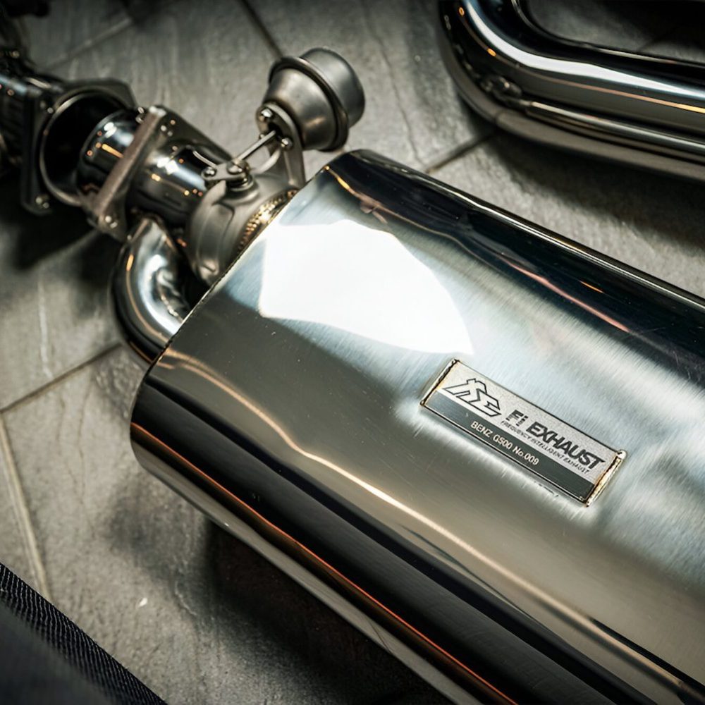 Fi EXHAUST’s valvetronic system for the Mercedes-Benz W463 G500 and G550 with Ultimate Double Quad Tips boosts performance with a 5-10% horsepower gain, offering customizable sound and enhanced torque in a premium, bolt-on package.