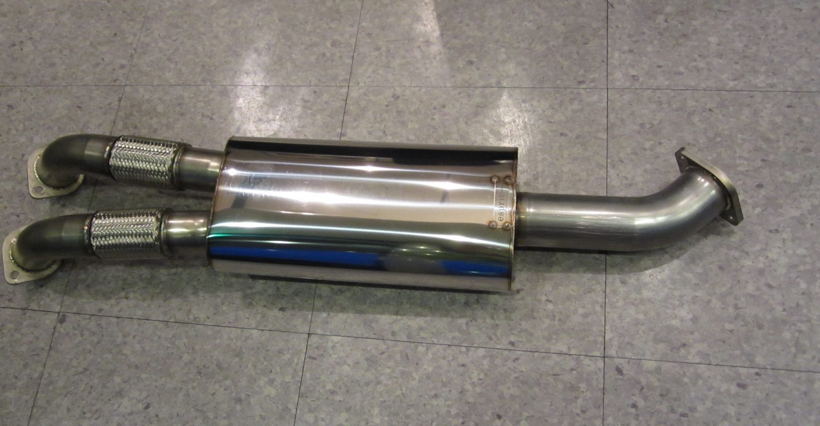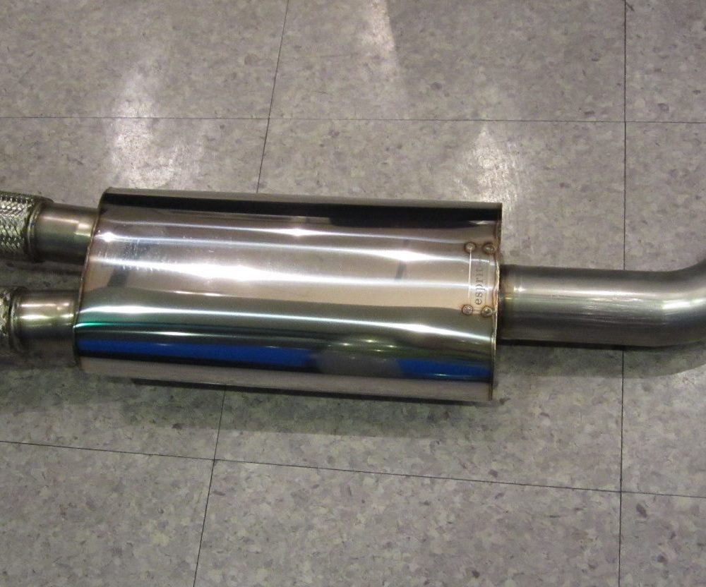 This mid-pipe replaces the stock catalyic converters yet still retains a resonator for reasonable sound control. Esprit has verified a 10km higher top speed by simply replacing the stock front pipe with this unit. * note – the picture also shows the Esprit turbo outlet pipes which are highly recommended as well.
