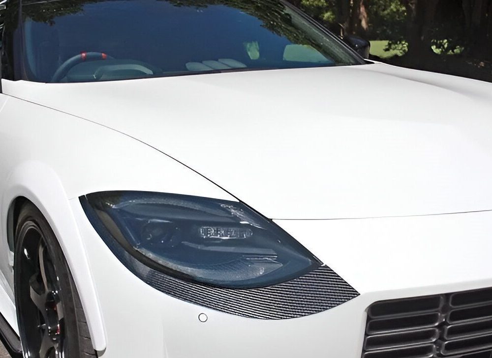 Enhance the sleek, aggressive look of your RZ34 Nissan Z with Garage Vary’s Carbon Eye Lids. Expertly crafted from high-quality carbon fiber, these eye lids are available in both plain weave and twill weave options, ensuring a perfect match for your vehicle’s style. Designed for a seamless fit, they effortlessly accentuate the headlights, adding a touch of refined sportiness to the front end.