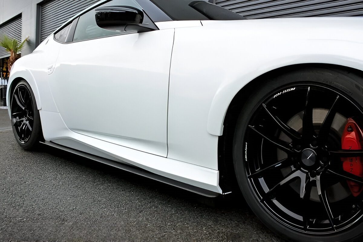 Garage Vary’s Side Steps for the RZ34 Nissan Z are designed to enhance both the style and aerodynamics of your vehicle. Available in FRP, plain weave carbon fiber, or twill weave carbon fiber, these side steps offer a choice of materials to match your aesthetic and performance preferences. Each set is meticulously crafted for a perfect fit and seamless integration with the sleek lines of the Nissan Z, ensuring a factory-finished appearance. These side steps not only add an aggressive look to your car but also provide practical functionality by improving aerodynamic flow.