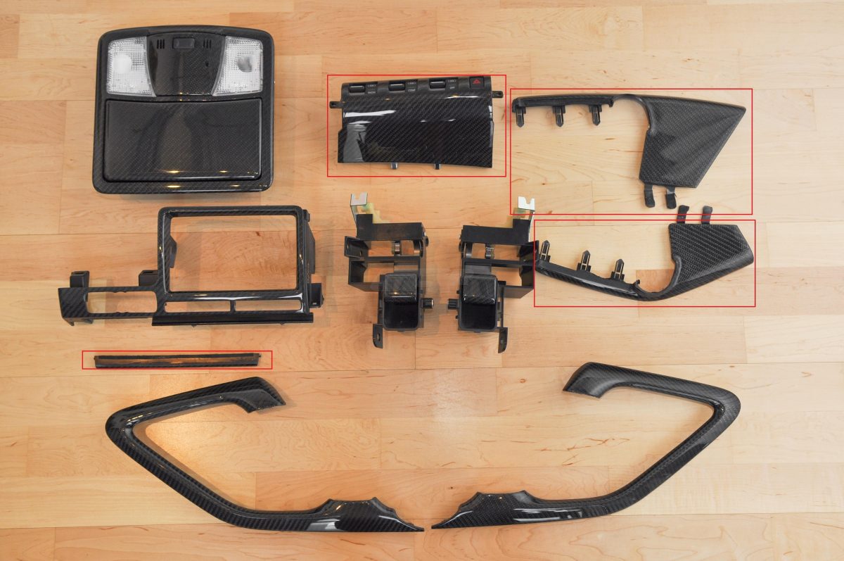 The conversion of the center console set is done on an exchange basis, so we will require your original OEM part to perform the modifications. Alternatively, in an effort to avoid any downtime, we offer the purchase of a new item directly with us when ordering your parts at a discounted rate. We can make any parts into real carbon fiber, for the GT-R or any other car you have!
