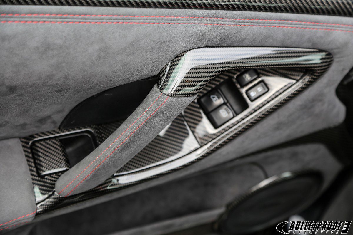 This listing is for a carbon fiber-converted OEM Door Handle Surround Set for the R35 Nissan GT-R.
