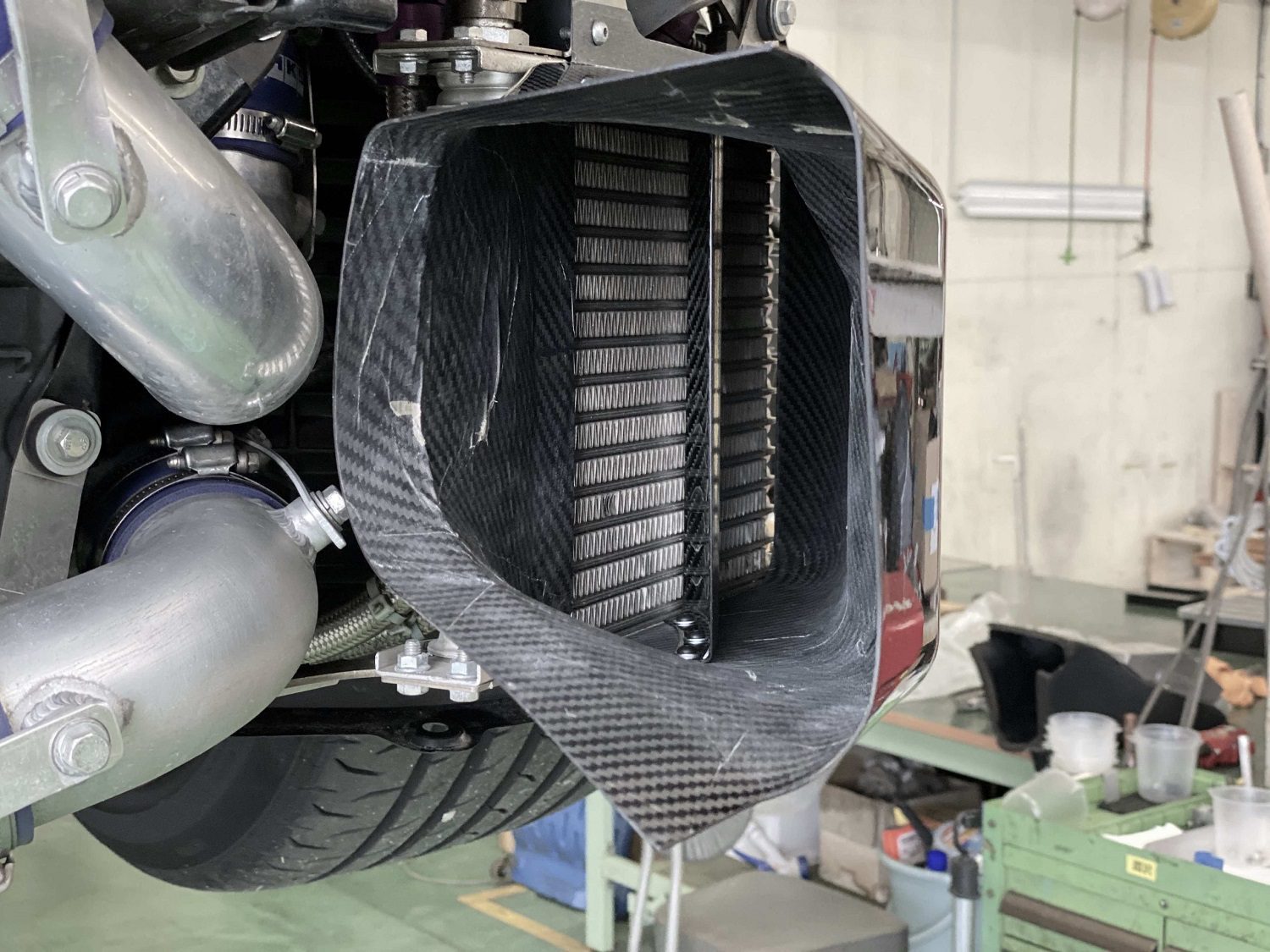 • Light and durable dry carbon oil cooler duct.