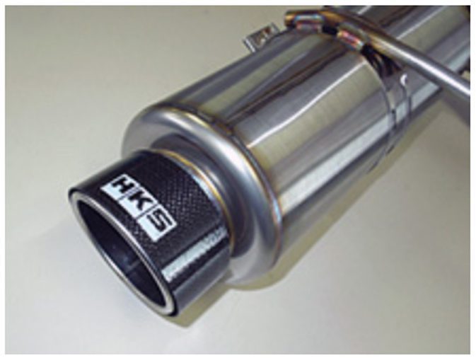 The concept is “light weight”. It will give you the sporty look because of the carbon wrapped tip. The weight gets half of the stock muffler. HKS made each pipe and silencer lighter. The appearance is aggressive cannonball design and we wrapped it with carbon at the tail. It is a pure sport muffler which has improvement in weight and output performance.