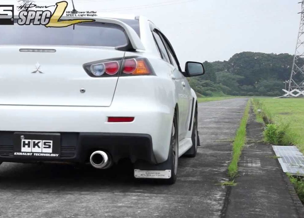 Designed and manufactured by HKS, this Hi-Power Spec L exhaust is created specifically for the Mitsubishi Evo X. This product gives a low drone to the turbo inline four, giving it an aggressive, racing style sound on full throttle. The idle is fairly quiet as well.