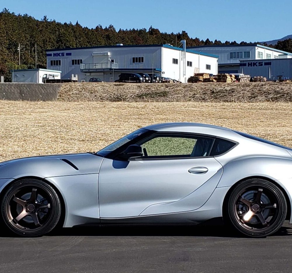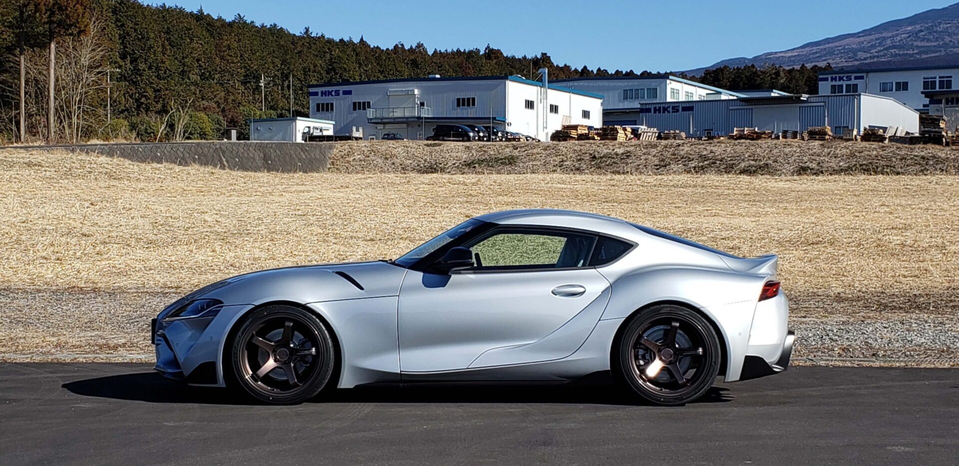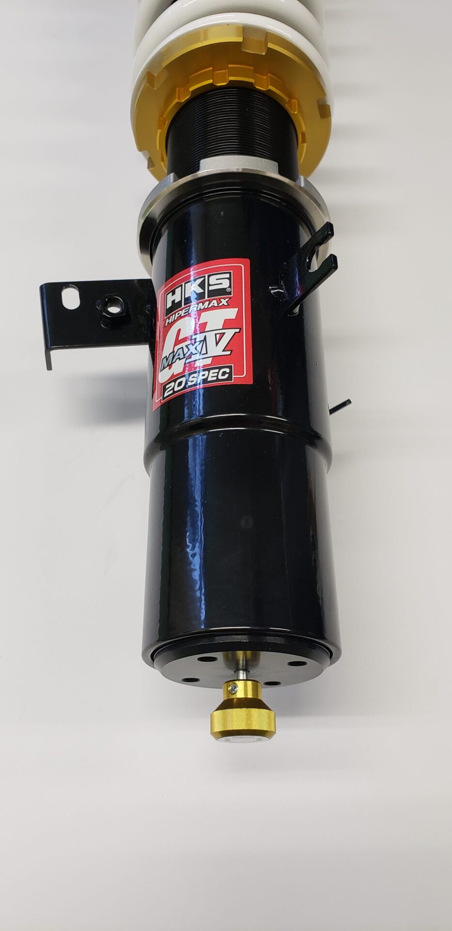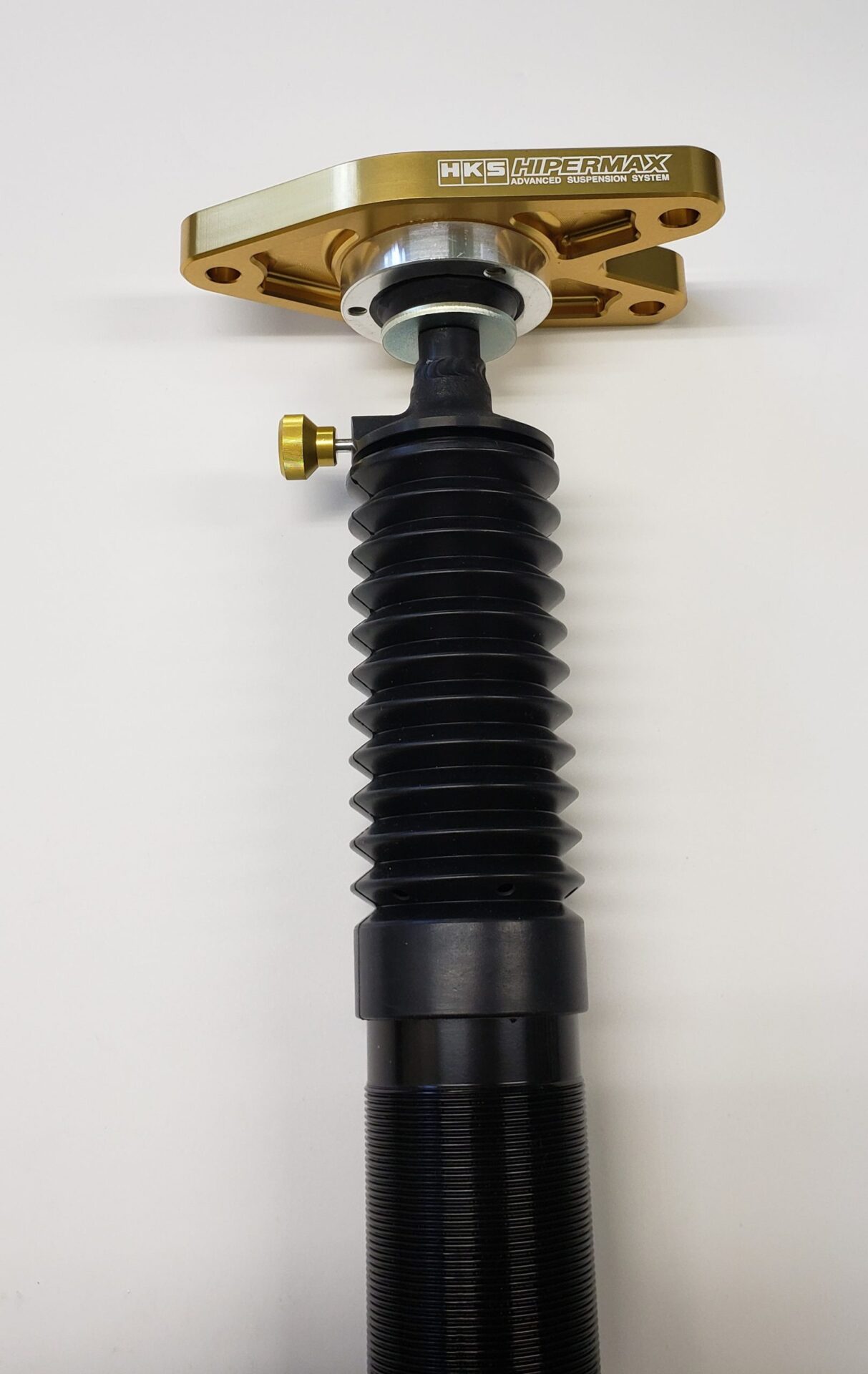 Using HKS traditional inverted type at the front. Of course, the strut-type must ensure the high rigidity but the inverted type does not necessarily mean the use of the large main shaft modifications to ensure the rigidity. This allows us to achieve smooth stroking without changing gas pressure. To ensure the stroking amount and height adjustable range, HKS designed a special outer cover.