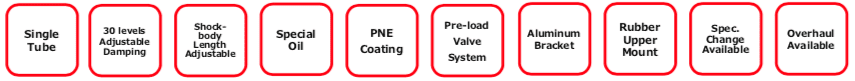 Rubber seat on the top and bottom of the spring, helps to improve spring movement while preventing sound and reducing friction during spring expansion. A suspension was revised for easier height and preload adjustment.