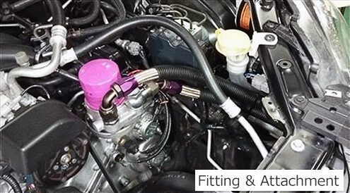 Newly designed single tube type fitting. Engine dyno tests and experience from D1 racing found that the oil pressure of the FA20 engine is extremely high compared to most conventional mass-produced engines (max oil pressure : over 12kgf / cm2). New single tube fitting withstanding the high oil pressure was designed and included in this kit.