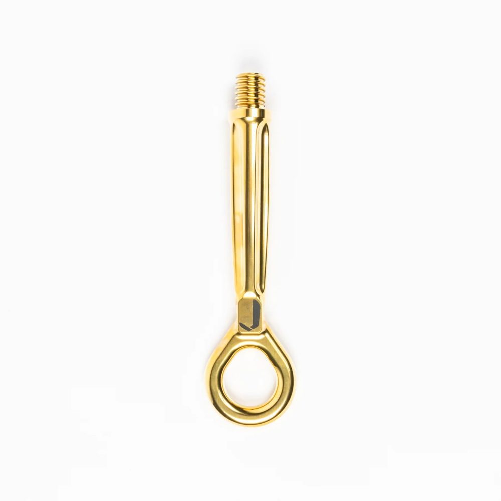 The JCR Billet Titanium Tow Hook for the 982 Porsche 718 Cayman GT4 RS and Spyder RS is a lightweight, TiN-coated Ti-6Al-4V upgrade that replaces the factory tow hook at under half the original weight.