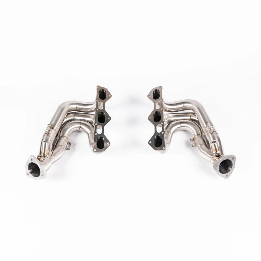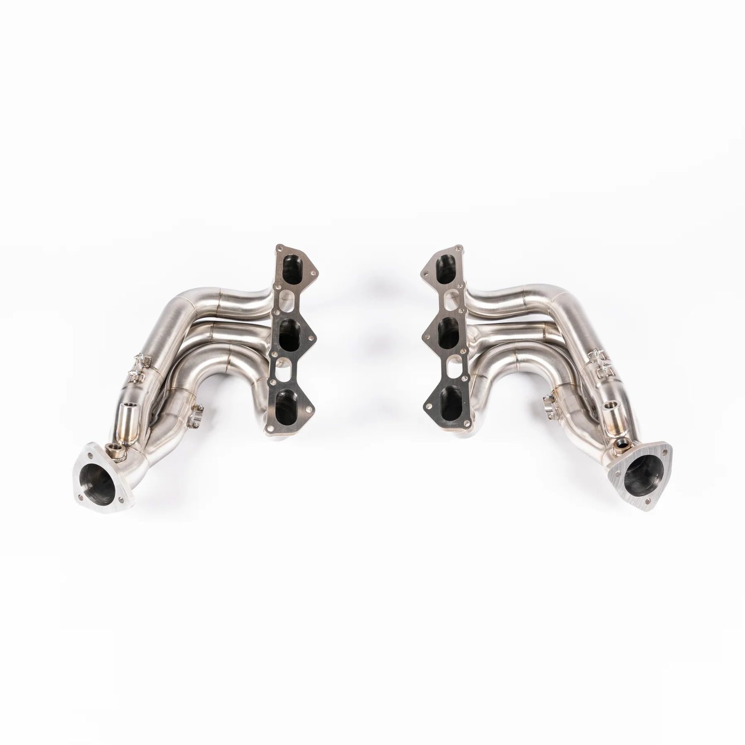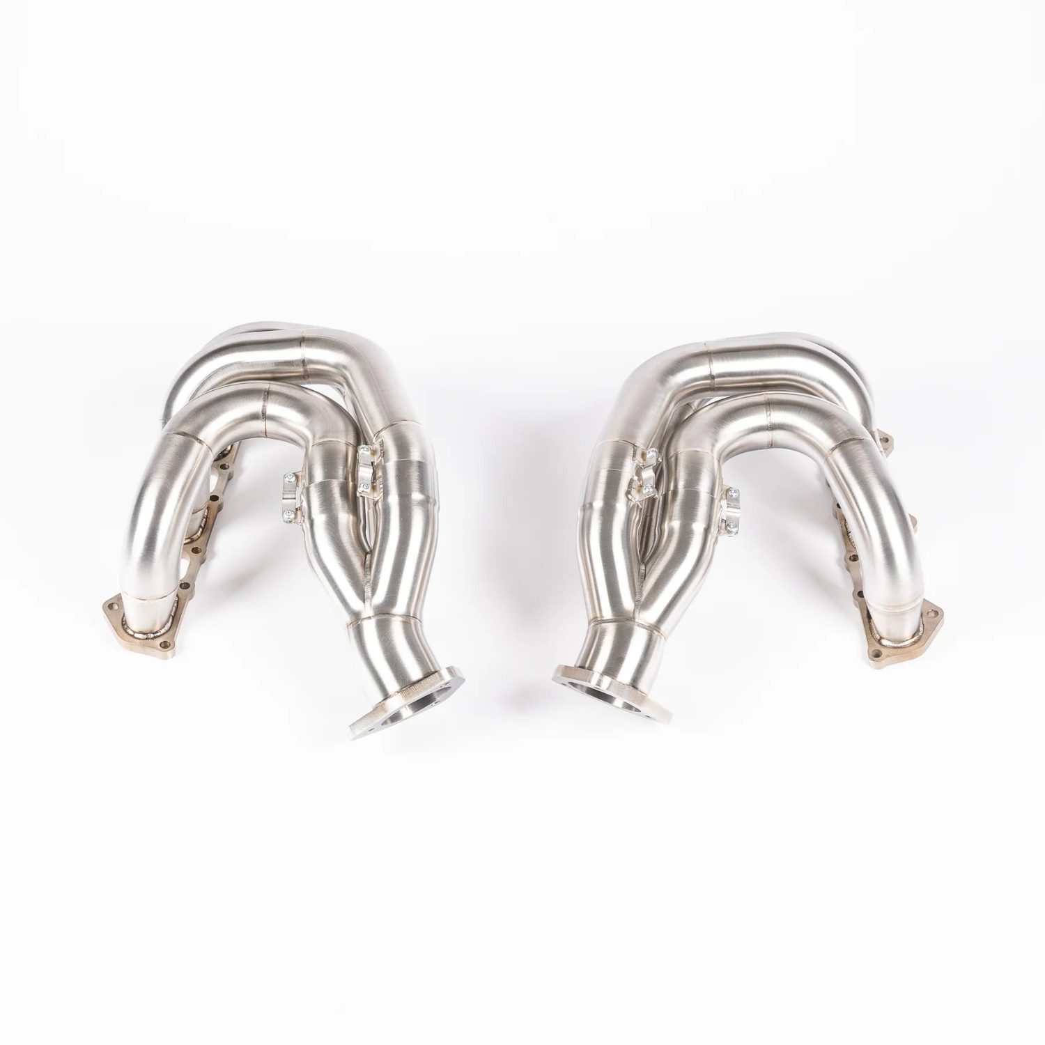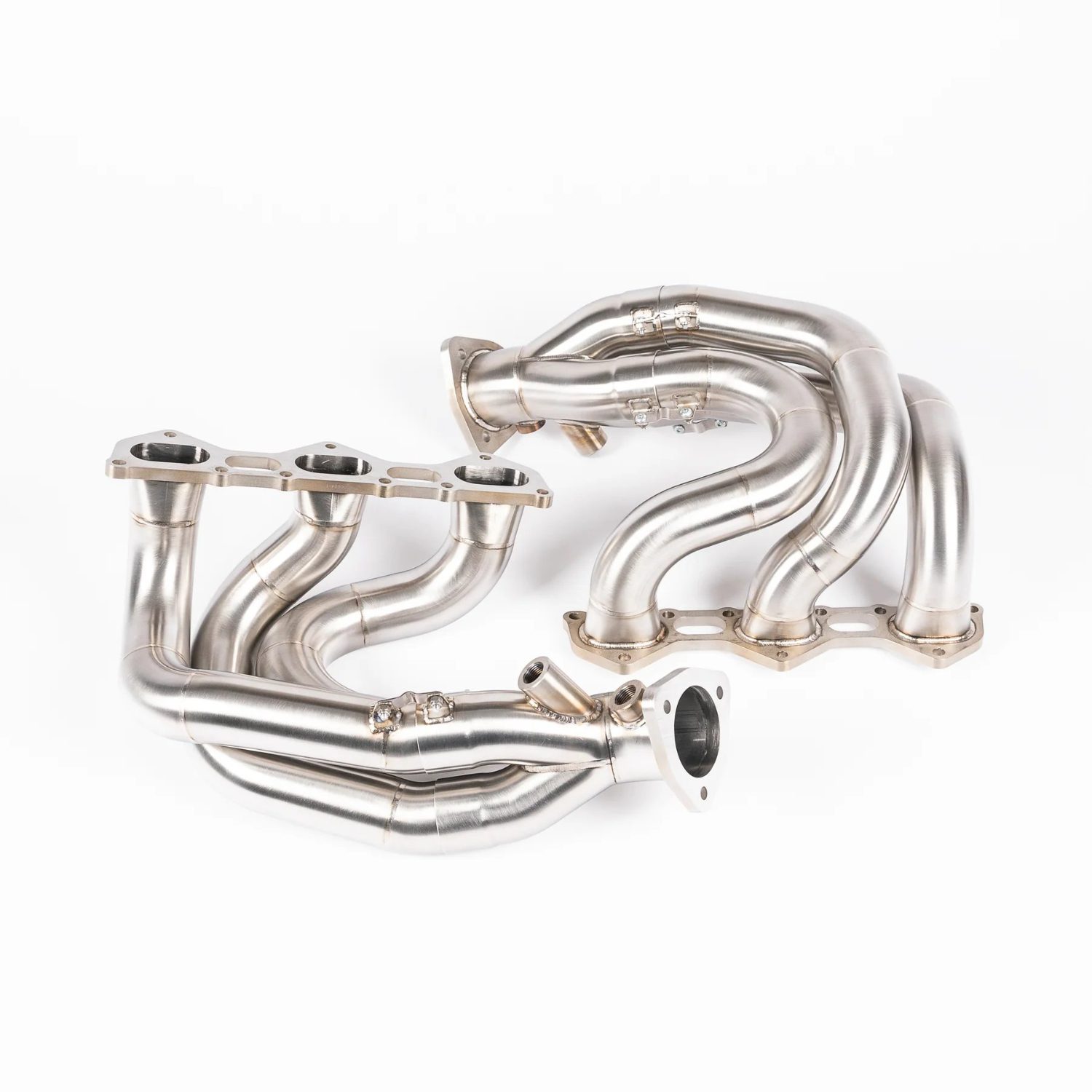The JCR Inconel Race Exhaust Manifolds for the 982 Porsche 718 Cayman GT4, GTS 4.0, Boxster GTS 4.0, and Spyder are designed to unleash the full potential of the 4.0L flat-six engine. Made from high-performance Inconel 625, these manifolds feature optimized collector dimensions and equal-length primaries to maximize exhaust flow and reduce backpressure. The result is a significant increase of approximately 38 horsepower and 34 lb-ft of torque compared to the OEM manifolds. In addition, they reduce weight by over 10.5lbs, improving overall vehicle dynamics. These direct replacements are easy to install, offering a seamless fit while enhancing both performance and exhaust sound. Perfect for performance enthusiasts and track drivers, these manifolds provide an upgrade that elevates power, reduces weight, and delivers an exhilarating driving experience.