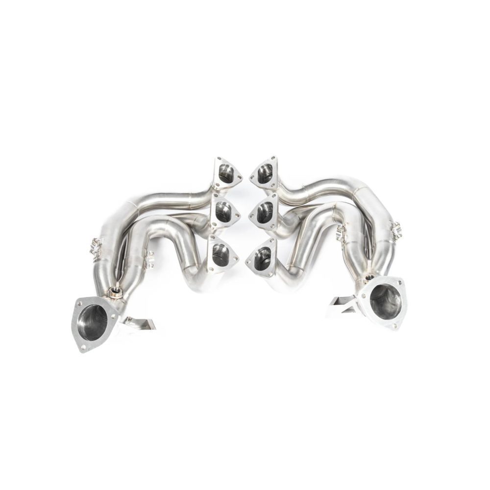 The JCR Inconel Race Exhaust Manifolds for the 982 Porsche 718 Cayman GT4 RS and Spyder RS are lightweight, heat-resistant, and designed to optimize exhaust flow. They deliver improved horsepower, torque, and sound for peak street and track performance.