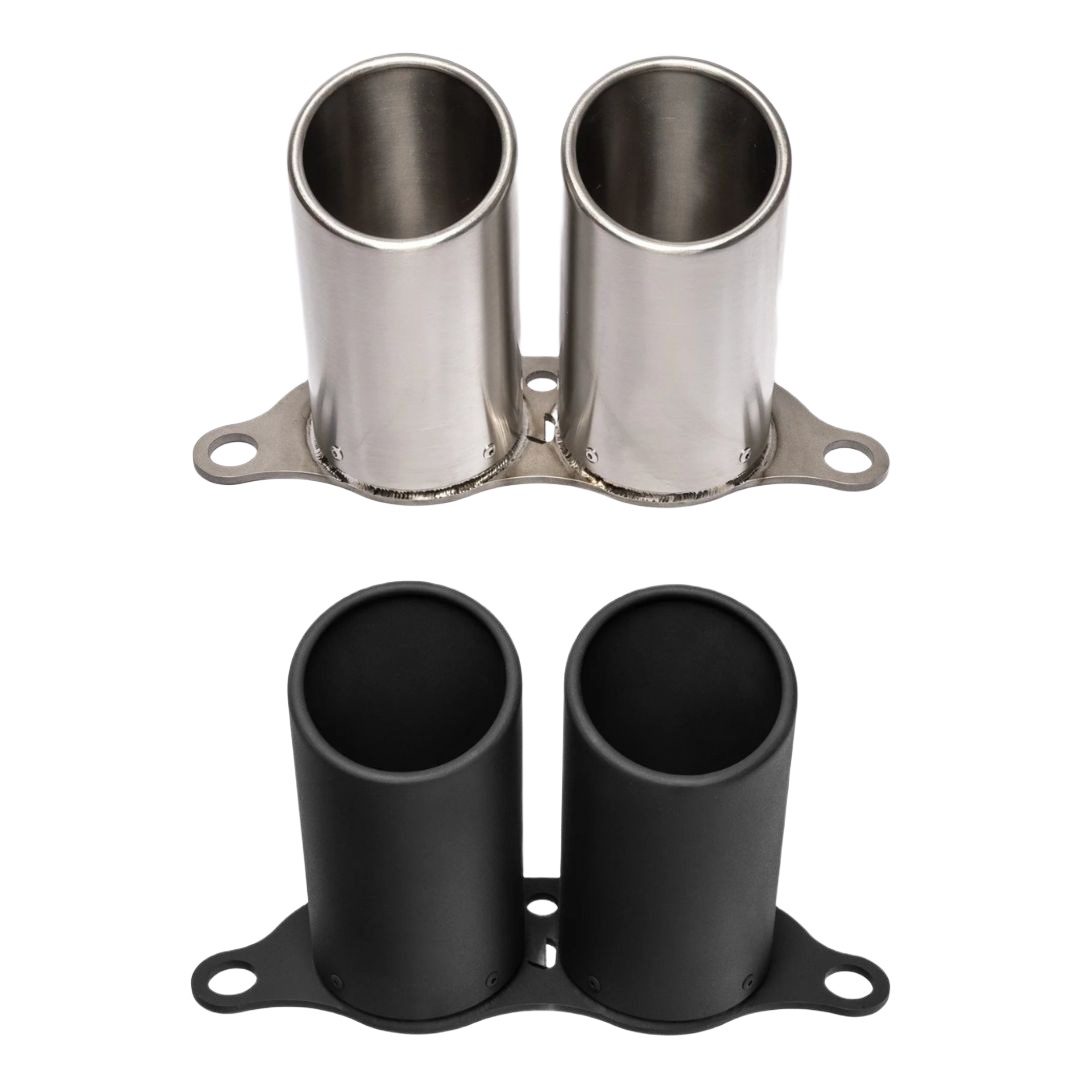 The JCR Inconel Race Rolled Exhaust Tips are a premium accessory designed for exclusive use with a JCR Titanium Race Exhaust System on the 992 Porsche 911 GT3, GT3 RS, GT3 Touring, and S/T. These tips are engineered with a titanium flange and an internal megaphone, finished with an Inconel rolled tip. With an increased tip diameter of 102mm, they provide a more aggressive and visually impactful aesthetic. By removing the sound suppression found in the factory tips, this free-flowing design also helps to unleash the full sound potential of the installed exhaust system. The tips are available in either a Polished or Black Coated finish to suit individual style preferences.
