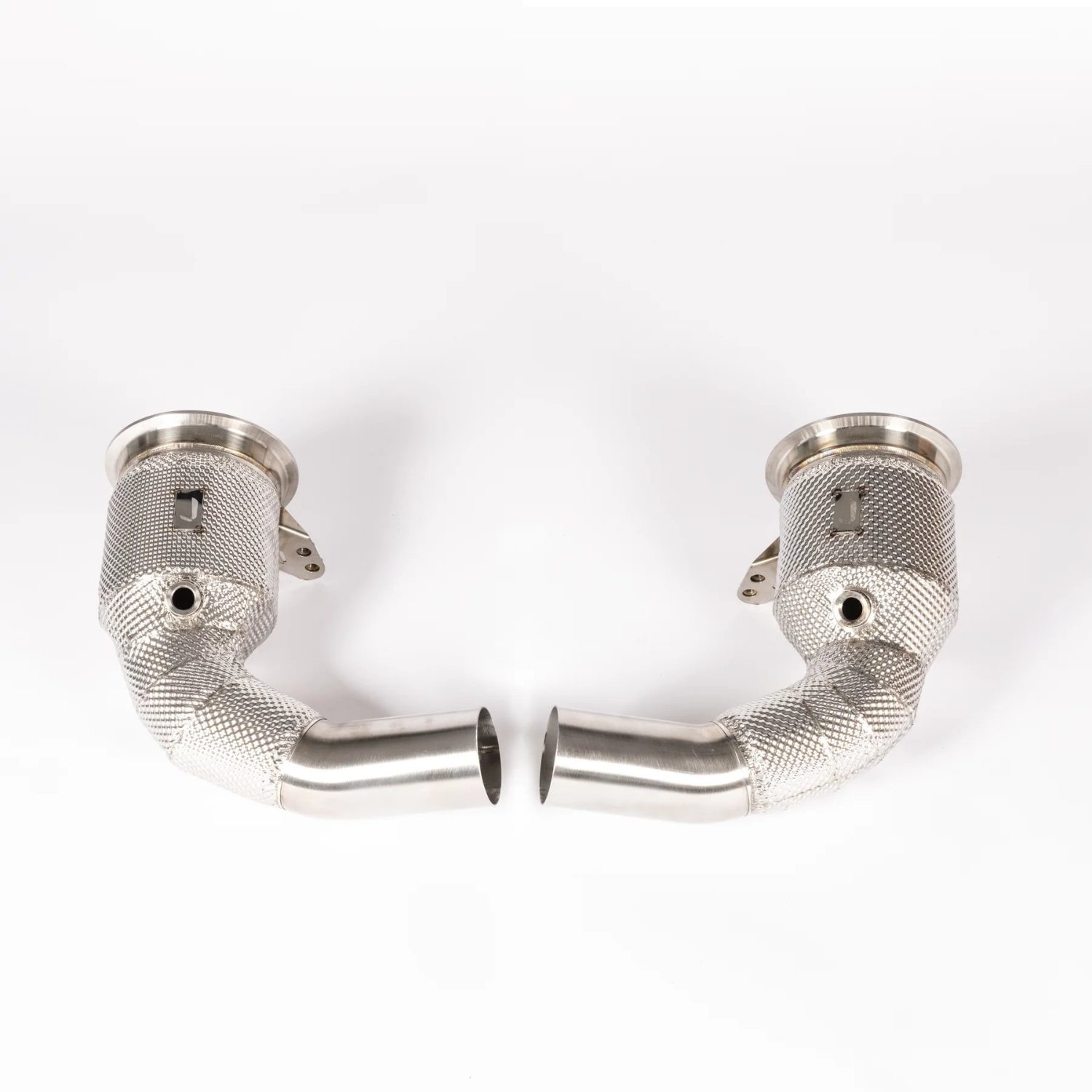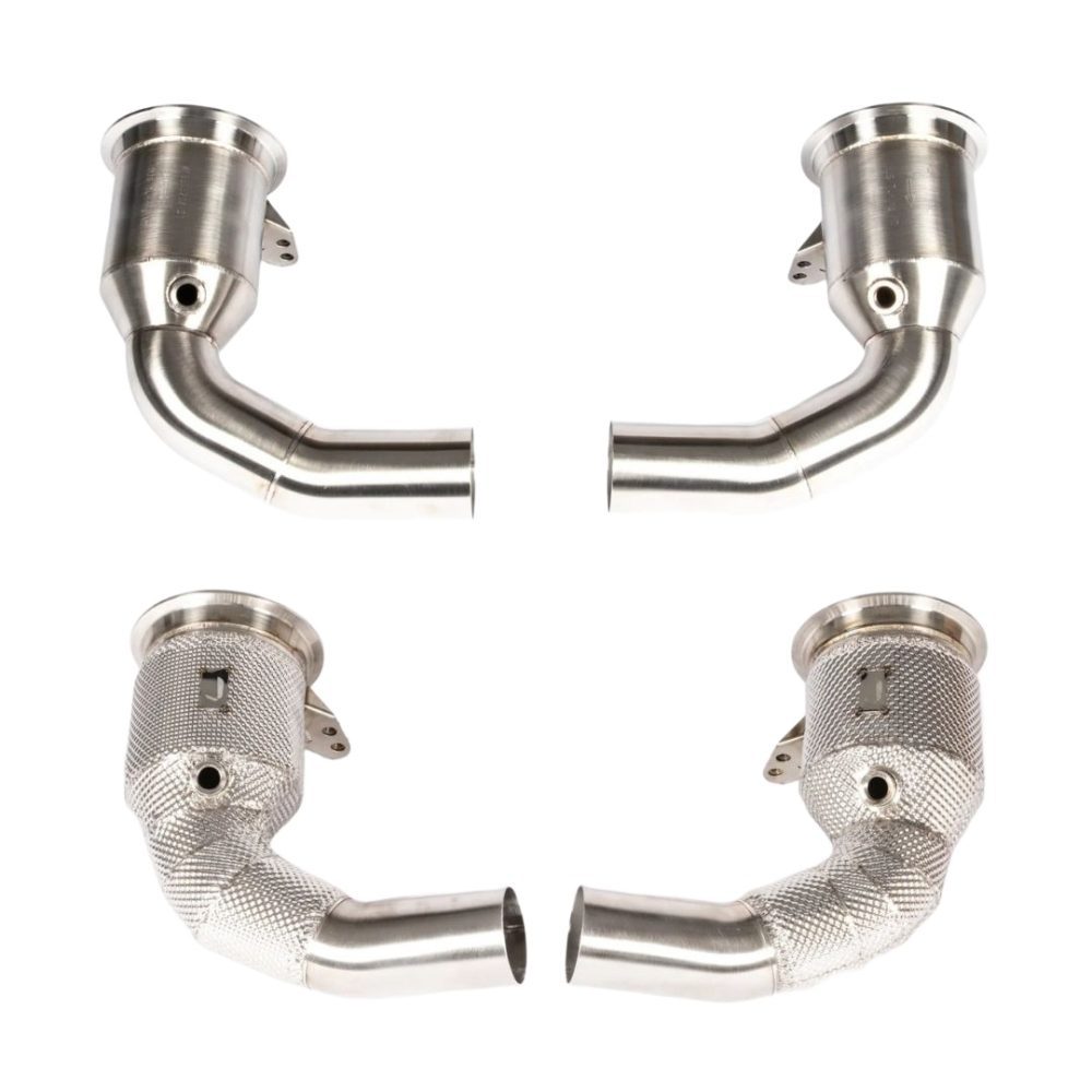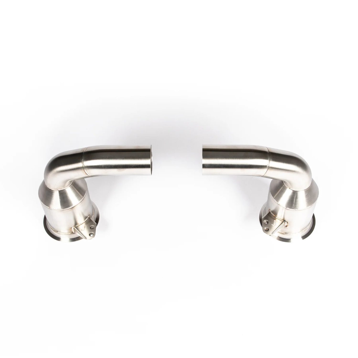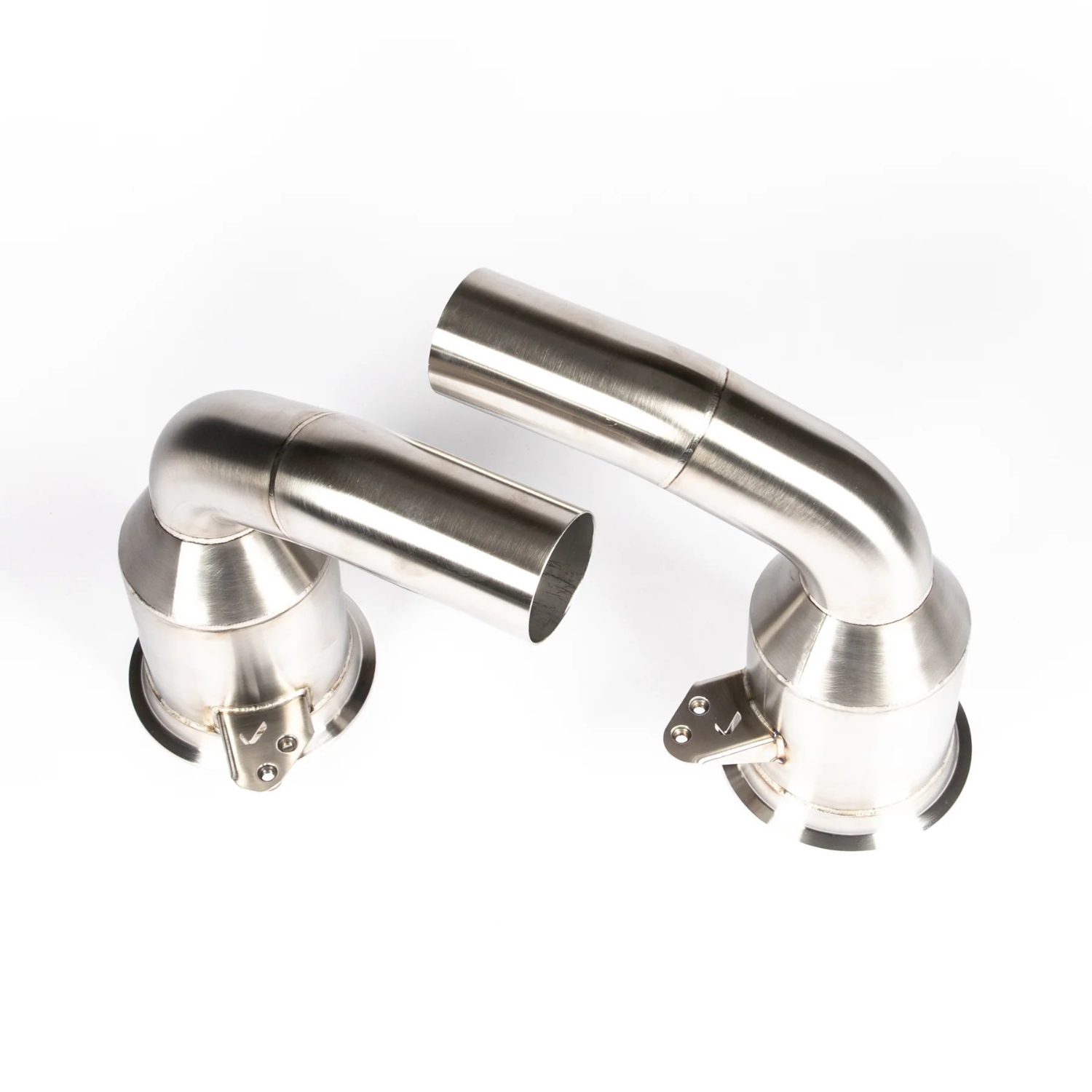 The JCR Inconel Race Silencers are a direct replacement for the OEM exhaust on the 992.1 Porsche 911 Carrera, Carrera S, Carrera GTS, Sport Classic, Turbo, and Turbo S. They are designed to improve sound, reduce weight, and increase performance with a high-flow HJS 200-cell core. Crafted from 100% Inconel 625, they offer a significant weight saving of 6.10kg. The Race Silencers are guaranteed to provide a substantial increase in horsepower and torque, and are also available with heat shielding.