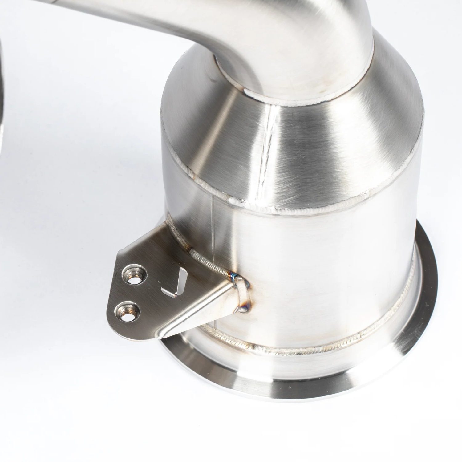 The JCR Inconel Race Silencers are a direct replacement for the OEM exhaust on various 992.1Porsche 911 models. Made from 100% Inconel 625, they replace the restrictive factory cats with a high-flow HJS 200-cell core to reduce weight by over 6kg and provide significant gains in horsepower and torque. The silencers are also available with heat shielding.