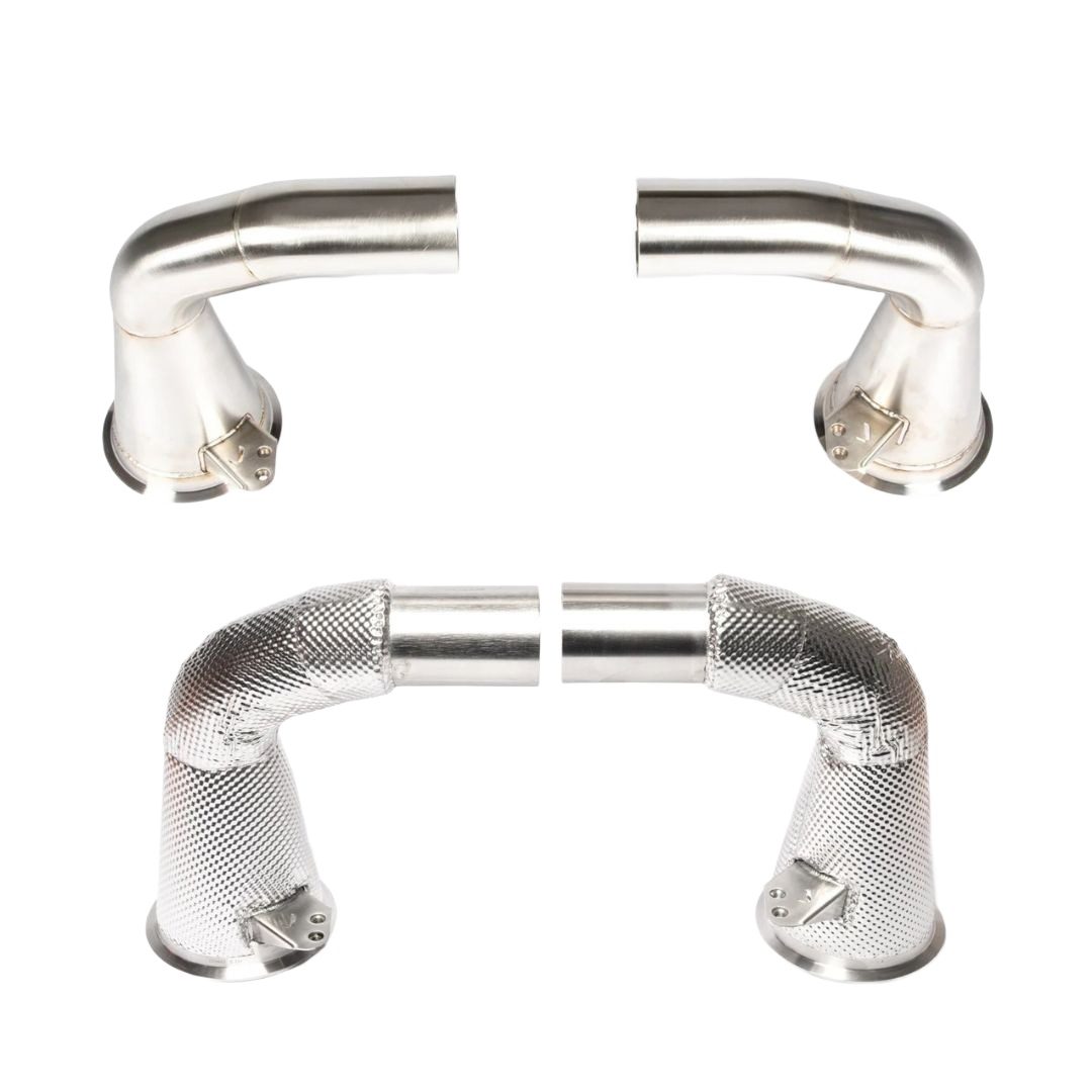 The JCR Inconel Silencer Deletes are a direct replacement for the OEM exhaust on various 992.1 Porsche 911 models. Made from 100% Inconel 625, they provide maximum performance and sound by replacing the factory catalytic converters. The components offer a significant weight reduction of 8.34kg and are also available with heat shielding. They are guaranteed to increase horsepower and torque.