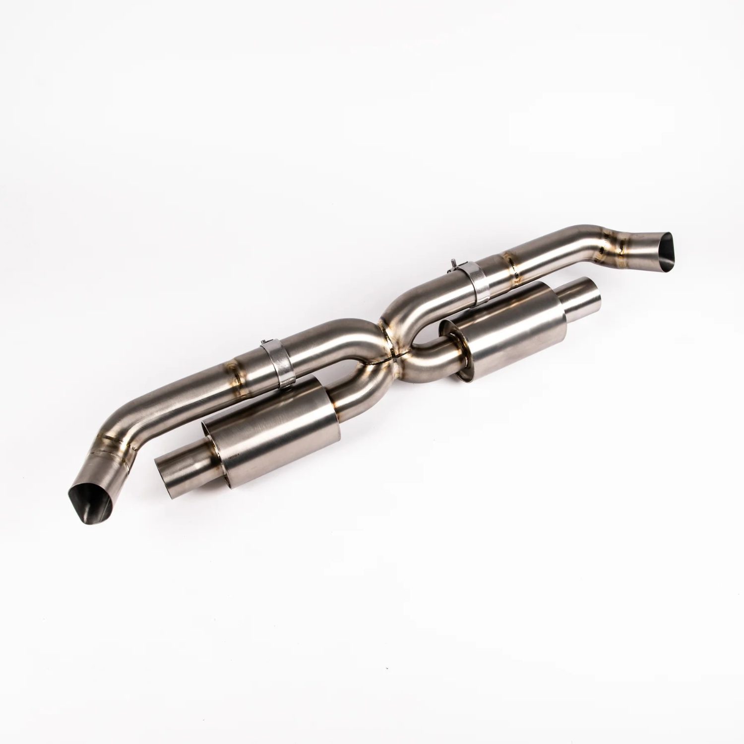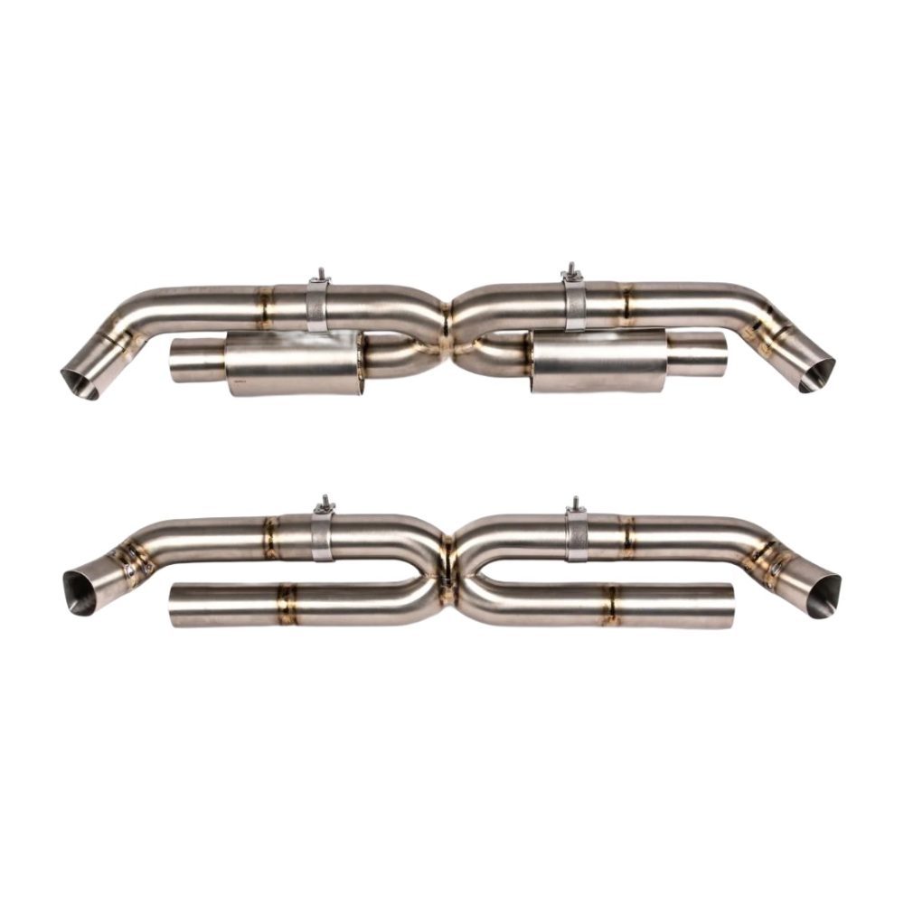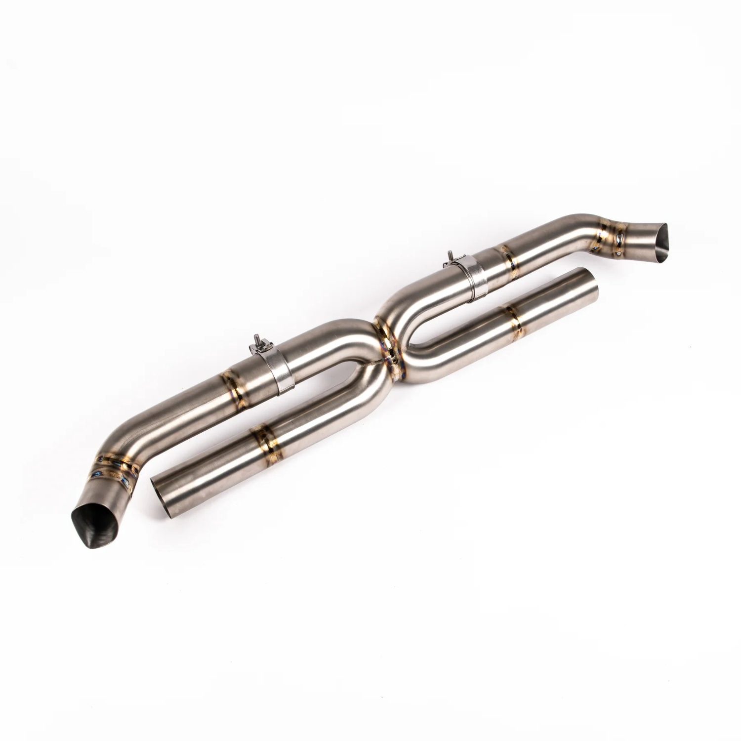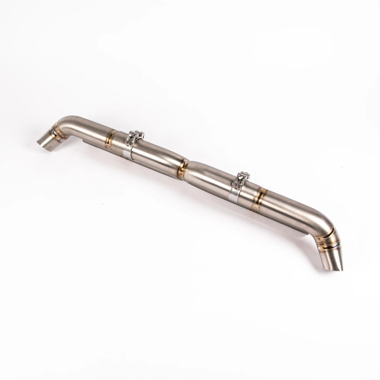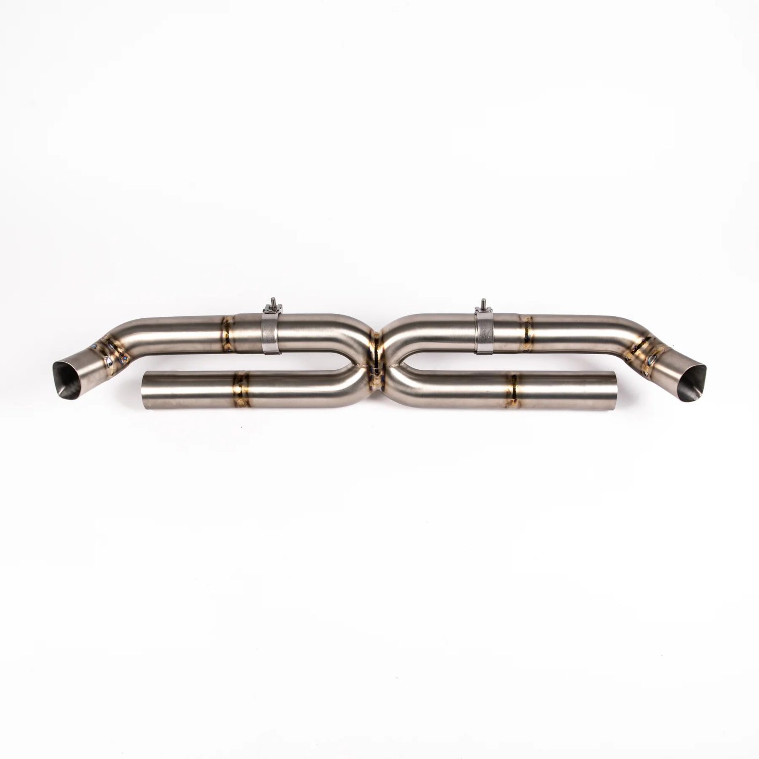 The JCR Titanium Center Section for the 991.2 Porsche 911 GT2 RS is a precision-crafted, lightweight titanium exhaust upgrade designed to enhance performance and sound. Engineered to replace the restrictive factory center section, it optimizes exhaust flow for significant gains in horsepower, torque, and turbo response, while reducing weight for improved handling balance. Available in Silenced and Non-Silenced configurations, the silenced version delivers a refined exhaust note with a tuned merge for smoother tones and reduced drone, while the non-silenced option unleashes an aggressive, race-inspired sound. Both variants ensure seamless OEM integration and are ideal for enthusiasts seeking to elevate the GT2 RS driving experience.