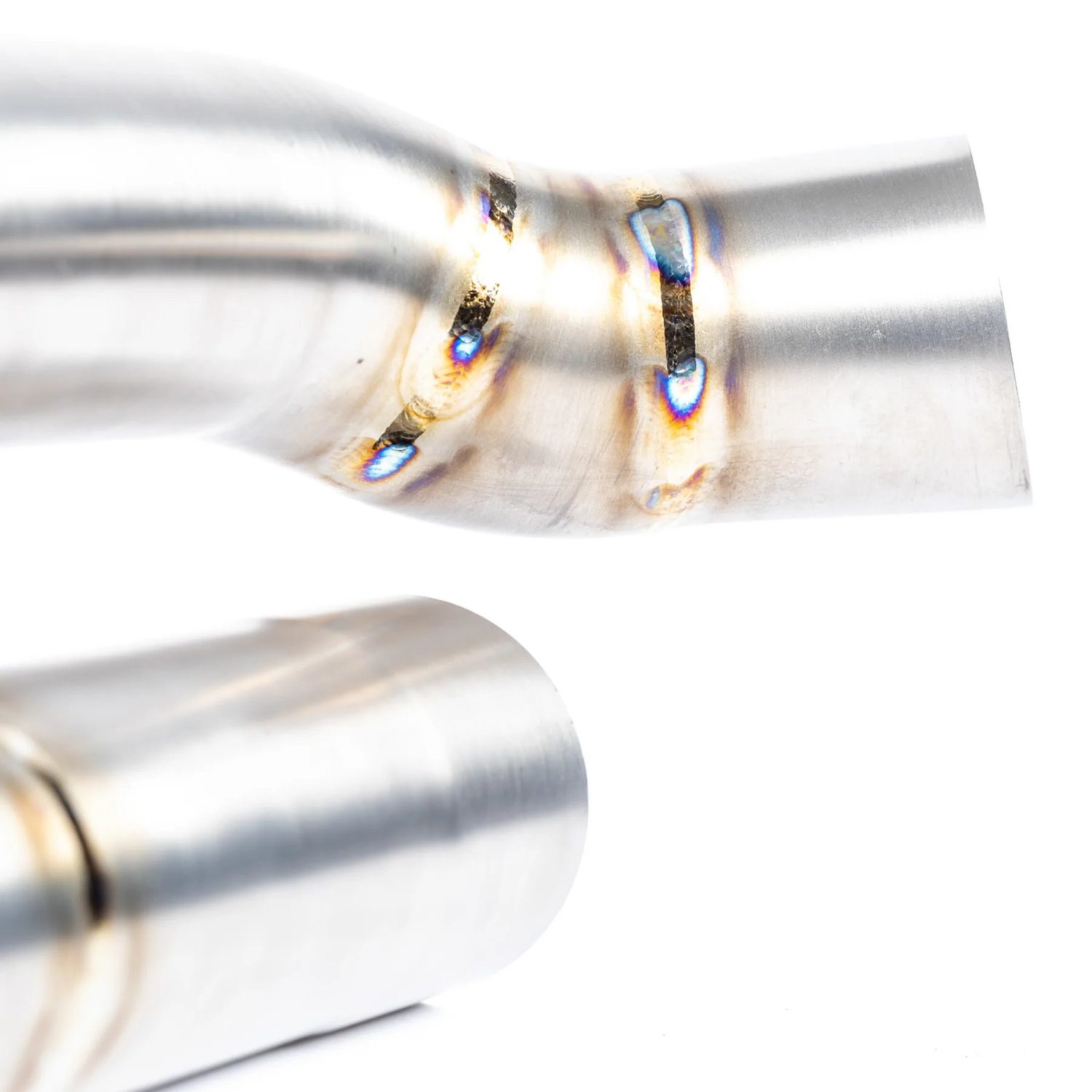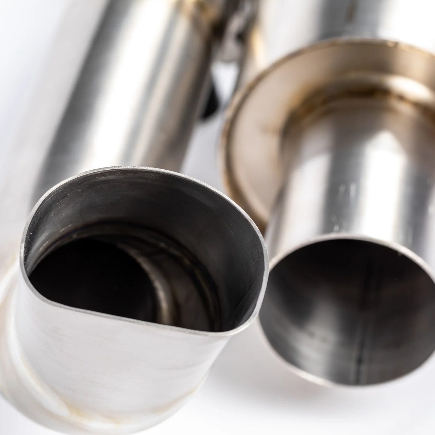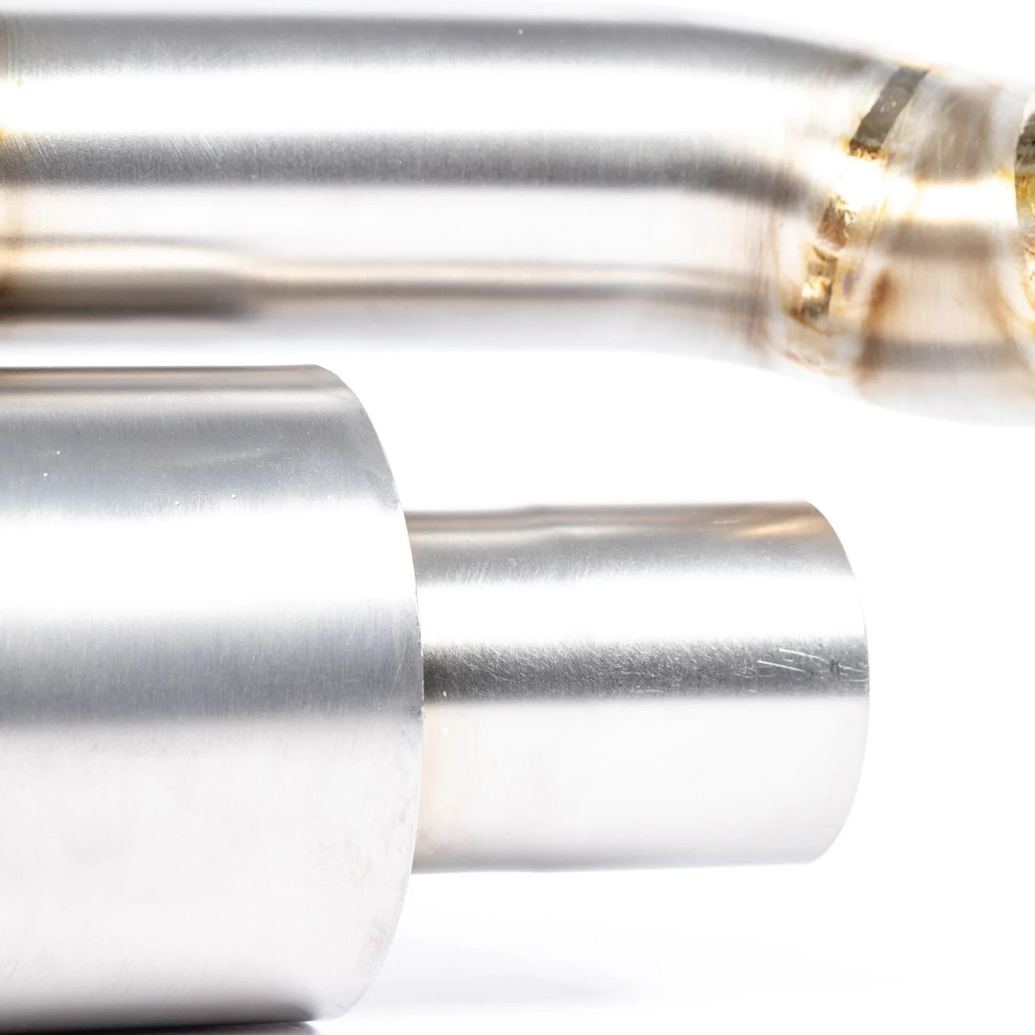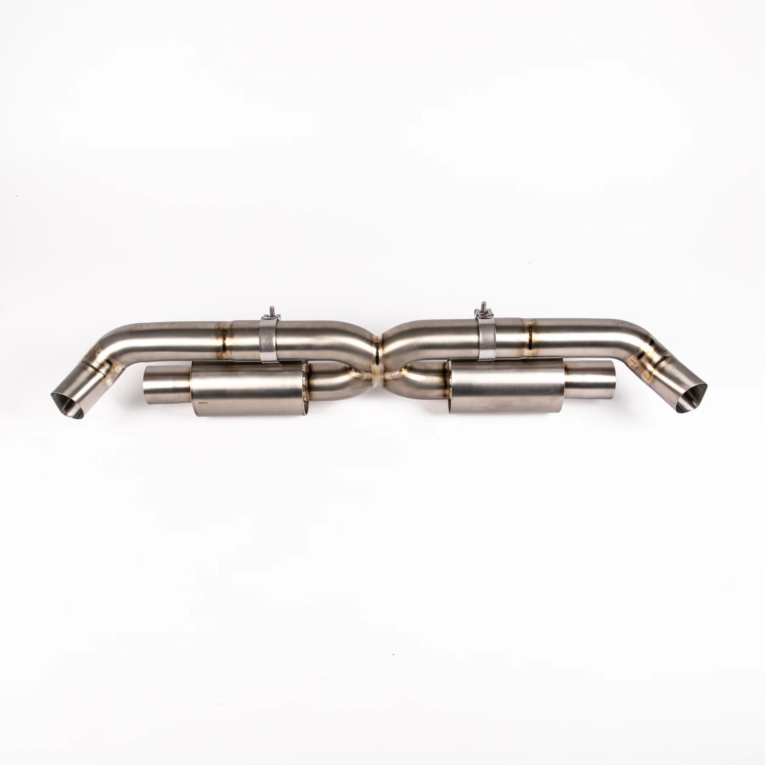 The JCR Titanium Center Section for the 991.2 Porsche 911 GT2 RS is a precision-crafted, lightweight titanium exhaust upgrade designed to enhance performance and sound. Engineered to replace the restrictive factory center section, it optimizes exhaust flow for significant gains in horsepower, torque, and turbo response, while reducing weight for improved handling balance. Available in Silenced and Non-Silenced configurations, the silenced version delivers a refined exhaust note with a tuned merge for smoother tones and reduced drone, while the non-silenced option unleashes an aggressive, race-inspired sound. Both variants ensure seamless OEM integration and are ideal for enthusiasts seeking to elevate the GT2 RS driving experience.