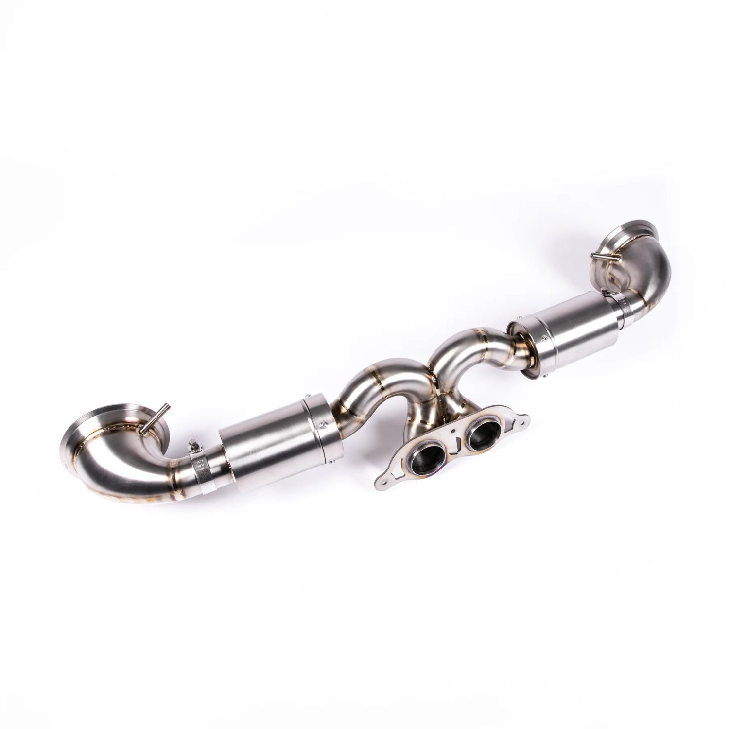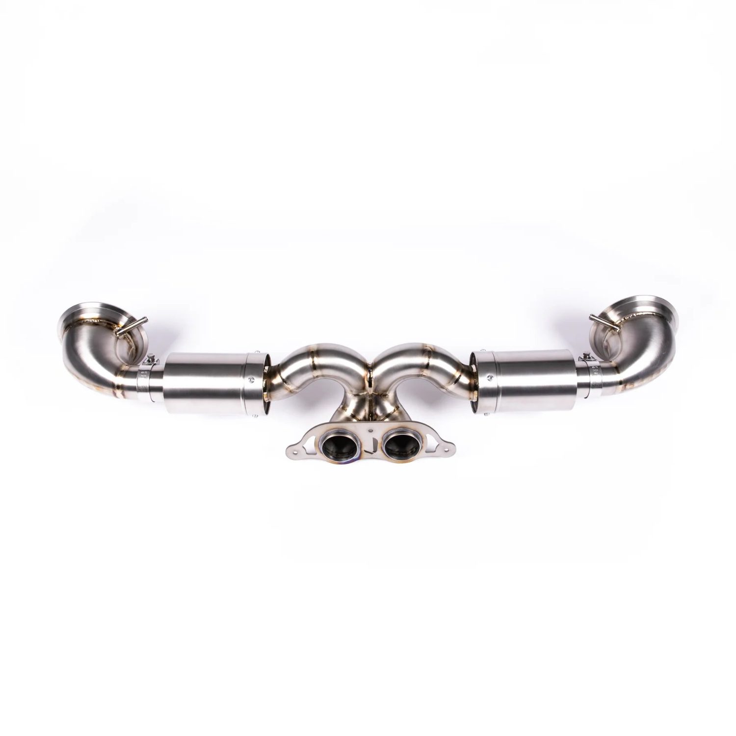 • Through extensive testing and development, JCR has refined multiple aspects of the exhaust system’s design to precisely tune and enhance both the tone and pitch of the Race Exhaust System’s sound and performance. The system incorporates fabricated bends that transition from the large internal diameter directly off the OPF, tapering down to 70mm pipework to achieve optimal back pressure — maintaining low-end torque while allowing unrestricted airflow to the 9000rpm redline. The exhaust flow then merges into a collector designed to create a scavenging effect while targeting and reducing unwanted drone frequencies, before exiting through twin 70mm pipes into the factory 991 GT-style 3-bolt flange. This allows customers to select any tip compatible with the OEM-style flange.