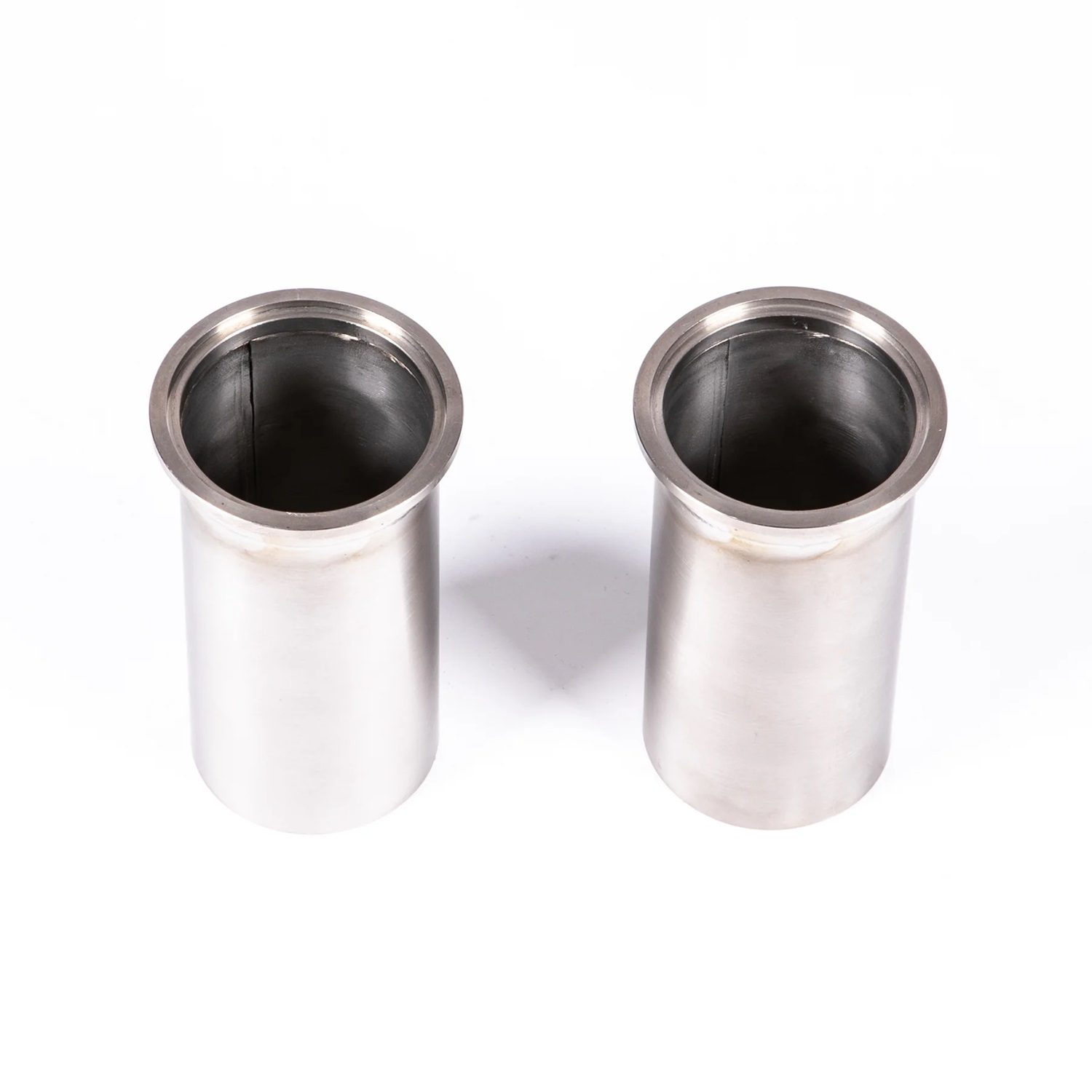 The JCR Titanium Side Silencer Bypass Valve Delete Section for 997 / 991 Porsche 911 GT3, GT3 RS, GT3 RS 4.0, GT3 Touring, and R is a lightweight titanium component designed to replace the valve section in JCR’s Valved Side Silencer Bypass. Using the same v-band connection as the original assembly, it allows for a quick conversion to a non-valved setup without the need to change the entire system. This modular design offers flexibility for owners who want to adjust their exhaust configuration for track or street use while maintaining JCR’s precision engineering and weight-saving benefits.
