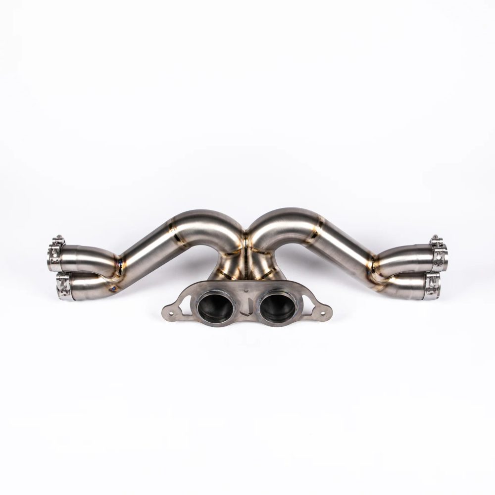 The JCR Titanium Superlight Center Bypass Section for the 997 and 991 Porsche 911 GT3, GT3 RS, GT3 RS 4.0, GT3 Touring, and R is engineered to deliver significant weight savings, improved flow, and an unmistakable motorsport tone. The section is constructed entirely from ultra-lightweight titanium, it replaces the factory center muffler with a free-flowing 70mm design that reduces rear-end mass for sharper handling and increased responsiveness. The precision merge section optimizes exhaust scavenging for enhanced horsepower and torque, while producing a rich, aggressive sound inspired by Porsche’s factory race cars. Designed as a direct replacement, it retains compatibility with OEM or aftermarket tips using the factory-style connection.