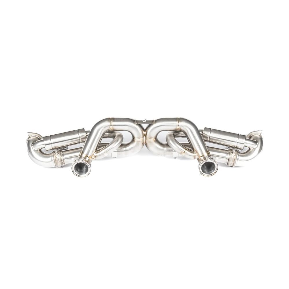 The JCR Titanium Valved Race Exhaust System for the 982 Porsche 718 Cayman GT4 RS / Spyder RS eliminates the restrictive factory silencer, reduces weight, and enhances exhaust sound, delivering the iconic GT3 howl. This upgrade improves exhaust flow and performance, offering a true motorsport-inspired tone for the 9000rpm GT3-derived engine.