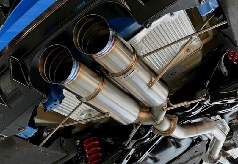A sports full titanium muffler with a focus on light weight. A straight structure is adopted to maximize power, and a titanium alloy with a thickness of 1 mm is used to thoroughly reduce weight. The smooth and beautifully bent titanium pipe using a 3D bender achieves smooth exhaust and secures the optimum exhaust flow velocity. Jaze’s classic dolphin tail adopts 114φ and has a powerful rear view. By increasing the diameter of the main pipe from 70φ to 70φ*2 and using only the main silencer, it is possible to exhaust air positively, achieving both quick rise of boost pressure and extension at high rotation. Experience the bass note of the 2.0L turbo with HYPER-ECU.