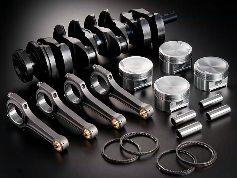 Custom kit for the 4B11 expands engine displacement by enlarging the bore and stroker. Revised engine displacement for this kit is at 2188cc. Designed and manufactured by Jun Auto for the Mitsubishi Evo X, this kit provides more power and torque than stock. Kit includes the billet crankshaft, C-Series piston kit, and the I-beam connecting rods.