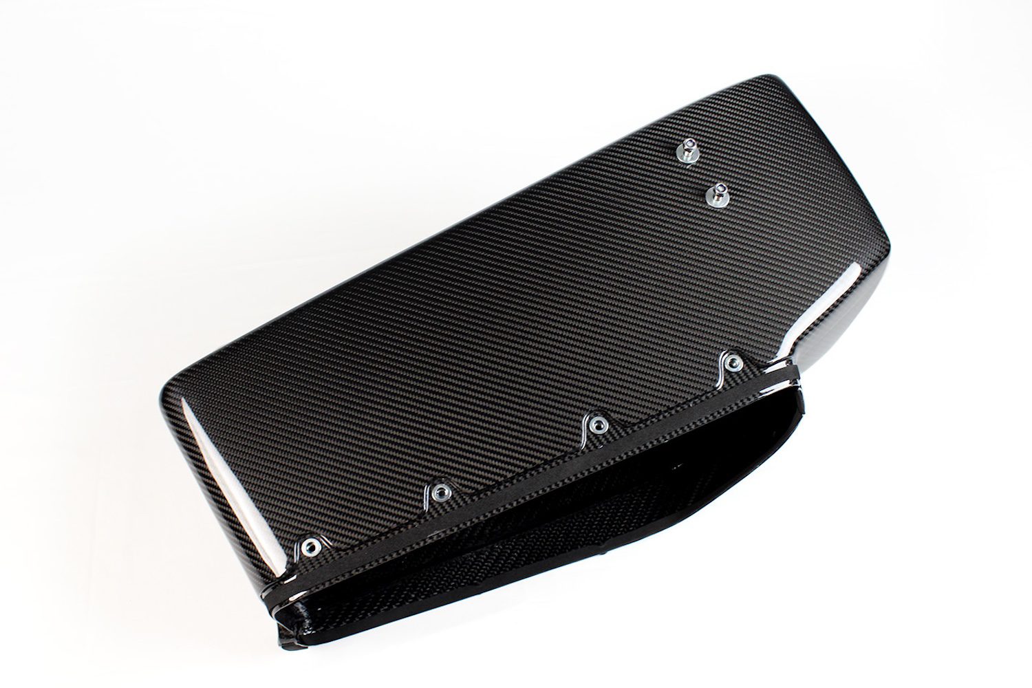 Karbonius Composites E36 Euro S50 Evo-style carbon airbox autoclave-cured 100% prepreg, 30 hp with Alpha-N, sharper throttle / induction sound, 1.9 kg, OE-fit with high-gloss UV finish.