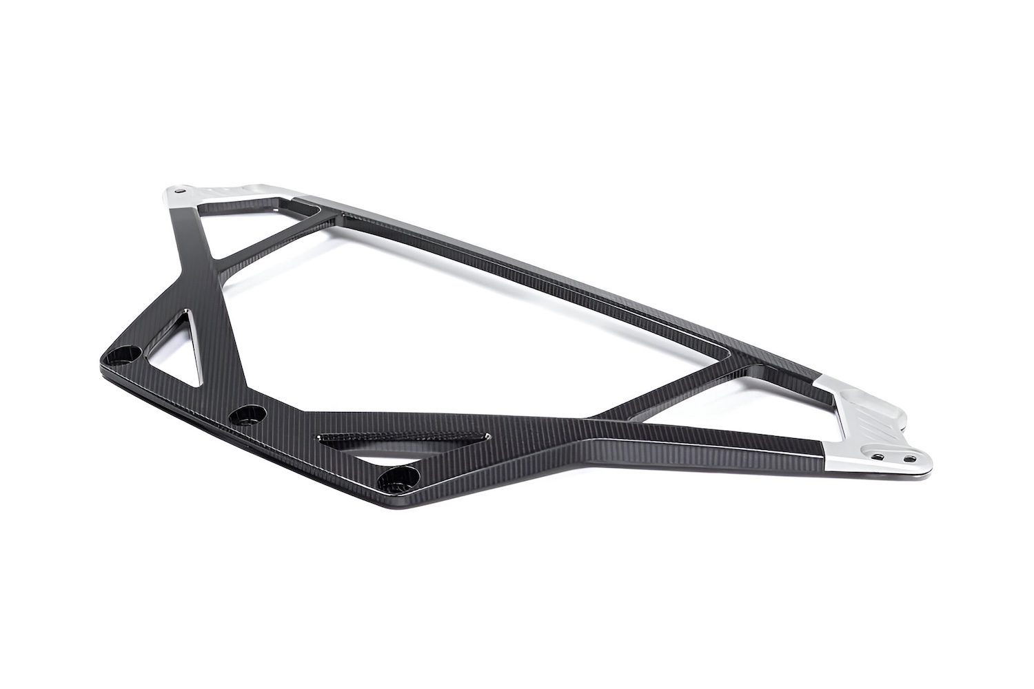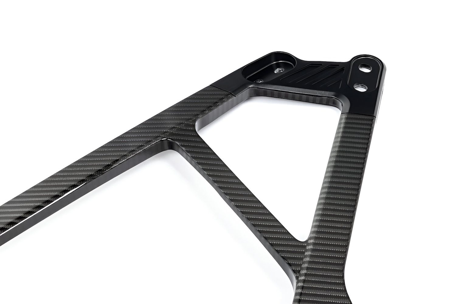 Karbonius Composites G8X M4 CSL-style strut brace enhances the sporting character of M cars while delivering exceptional chassis rigidity. Designed and manufactured in Spain under UNE-EN ISO 9001:2015, the brace is hand-laid from premium prepreg carbon and produced using advanced processes including 3D scanning, autoclave curing, and robotic cutting. A monobloc tubular construction eliminates unnecessary joints, and the precisely engineered layup incorporates three high-quality fabrics, including high-modulus unidirectional carbon. 6061 aluminum machined interfaces provide durable wear resistance at the chassis mounts. The result is an OEM-grade finish and fit with standout aesthetics at only 1.8kg a substantial reduction versus the 3.5kg OEM bar prioritizing true functional strength and rigidity over weight savings alone.