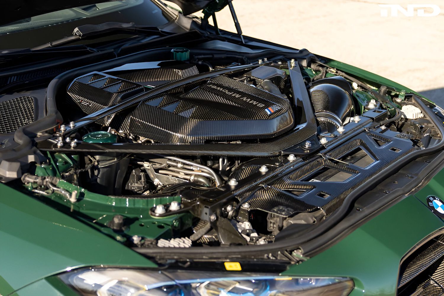 Karbonius Composites notes that while the F8x M3 / M4 shipped with a striking, highly rigid carbon strut brace tying the towers to the core support, the G8X platform received a cost- and space-constrained stamped-steel 2-piece brace. To address this, Karbonius engineered a full replacement: an autoclave-cured, 100% pre-preg carbon tubular V-brace that minimizes joints and potential weak points for true structural integrity. Unlike multi-piece, jointed alternatives or assemblies using off-the-shelf carbon tubes, Karbonius one-piece V-brace is purpose-built for the G8X, increasing rigidity while removing more than 5.5lb compared to the factory unit. A CNC-machined 6061 aluminum mount is integrated into the bar for added strength and is offered anodized in natural silver or black. Installation is fast and straightforward using factory hardware, and the elevated aesthetic arguably rivals the iconic F8X carbon brace.