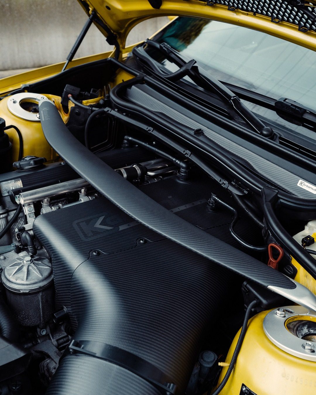 Karbonius Composites carbon strut brace is a high-impact chassis upgrade for E46-platform BMWs, engineered to increase structural rigidity and reduce tower flex and alignment change during spirited or track driving. Inspired by the discontinued BMW Performance strut bar, Karbonius designed an exceptionally strong yet lightweight solution that enhances stability while delivering a striking visual presence. The brace is manufactured from pre-preg carbon fiber and autoclave-cured in an aluminum mold; the strut tower caps are 5-axis CNC-machined, and titanium strut tower nuts are included.