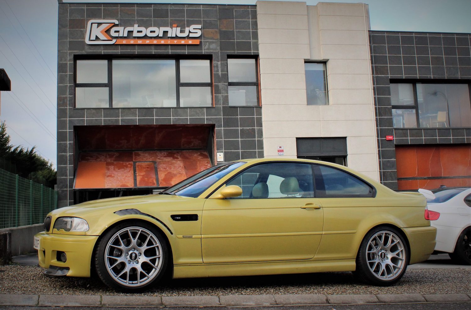Karbonius Composites’ E46 M3 carbon fenders are 991 GT3 RS-inspired, add 15 mm of width, and feature carbon vented louvers to bleed wheel-arch pressure and increase front downforce delivering lightweight, track-ready aesthetics